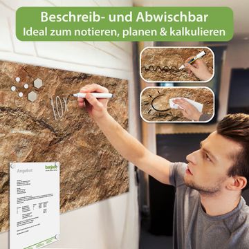 Die banjado Glas Magnettafel mit dem Motiv Motiv Steinstruktur verbindet Funktionalität mit Stil. Sie ersetzt das Zettelchaos durch klare Strukturen und bringt dabei eine warme, natürliche Atmosphäre in Ihr Zuhause. Ob im Büro, in der Küche oder im Eingangsbereich - dieses Design-Board zieht Blicke an und sorgt für Ordnung mit Charakter.