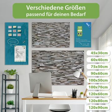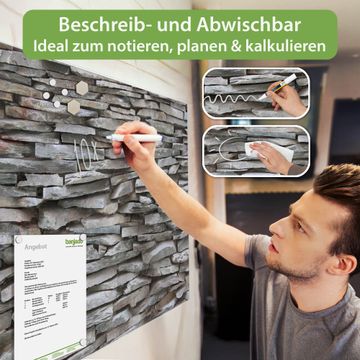 Die banjado Glas Magnettafel mit dem Motiv Motiv Steinwand verbindet Funktionalität mit Stil. Sie ersetzt das Zettelchaos durch klare Strukturen und bringt dabei eine warme, natürliche Atmosphäre in Ihr Zuhause. Ob im Büro, in der Küche oder im Eingangsbereich - dieses Design-Board zieht Blicke an und sorgt für Ordnung mit Charakter.