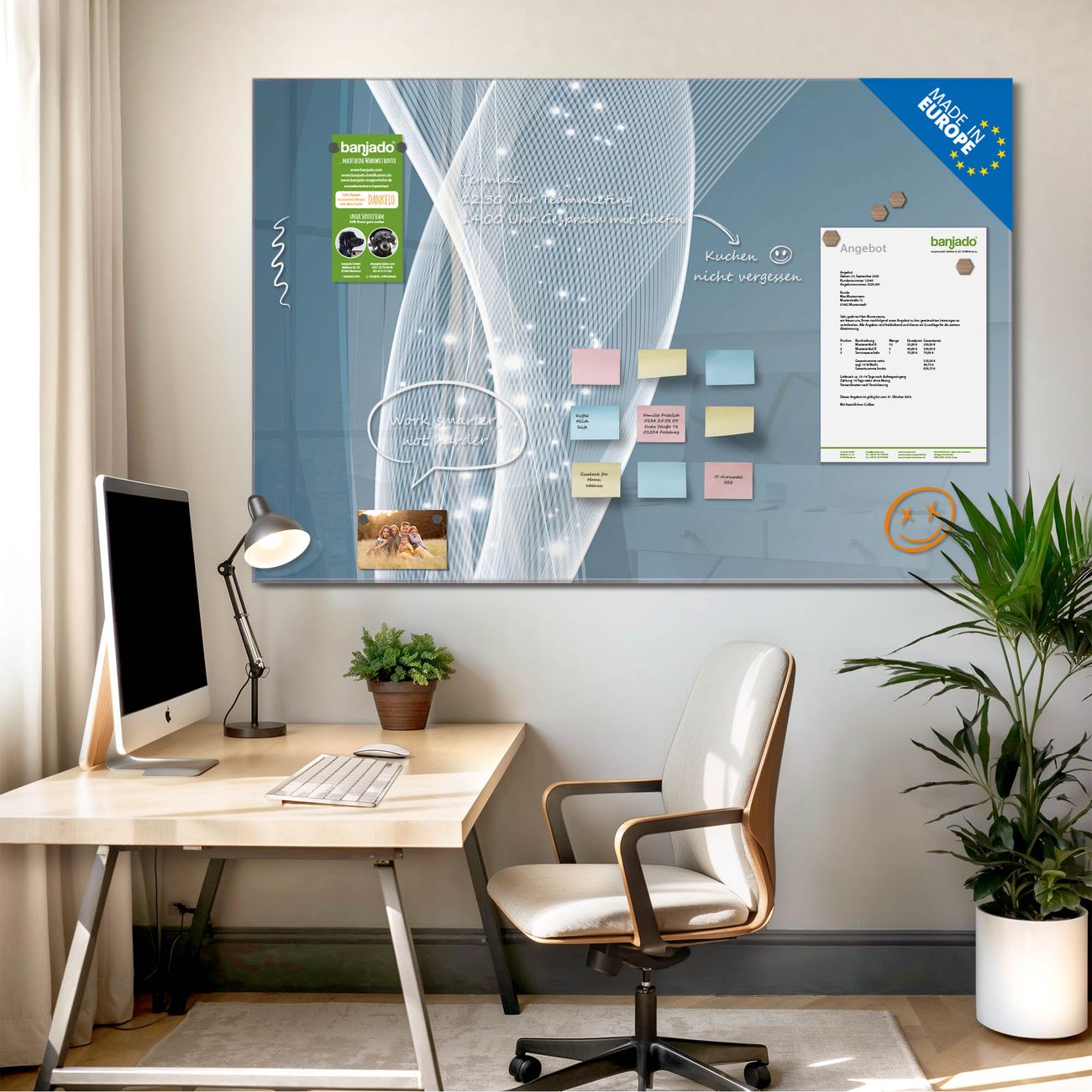 Jede Glas Magnettafel wird in unserer Werkstatt von Hand gefertigt und sorgfältig geprüft. So erhalten Sie ein echtes Qualitätsprodukt, das Funktion und Ästhetik perfekt vereint.?? Warum banjado?