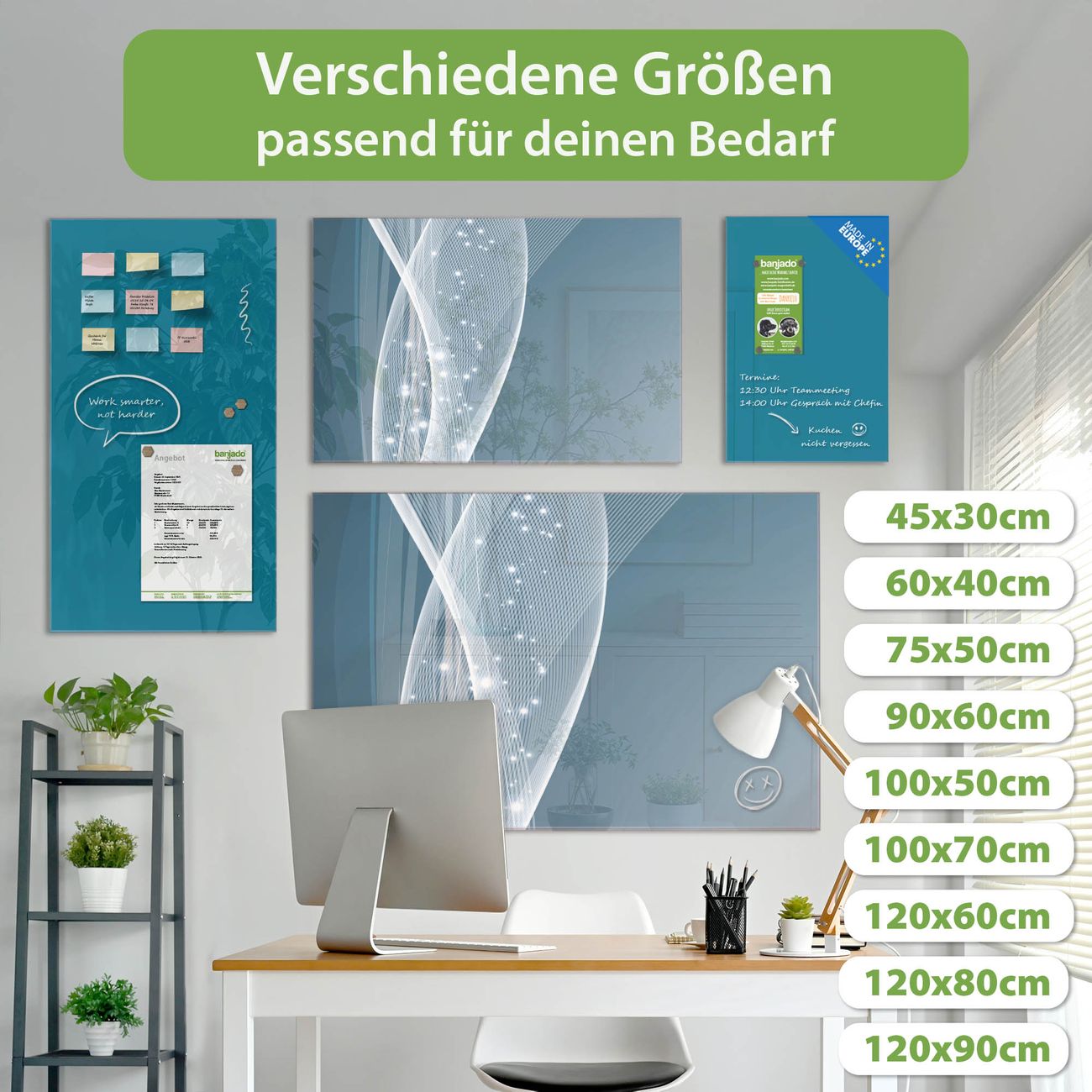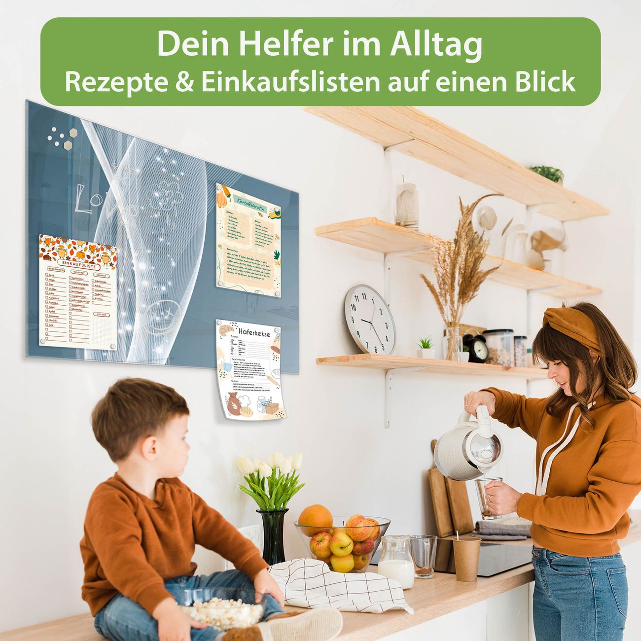 Auf der glatten Glasoberfläche lassen sich Termine, Rezepte oder Notizen ganz einfach mit Kreidestiften festhalten und rückstandslos entfernen. Starke Neodym-Magnete halten Ihre wichtigsten Erinnerungen sicher an Ort und Stelle. So entsteht Ihre ganz persönliche Ideenwand - jeden Tag neu.