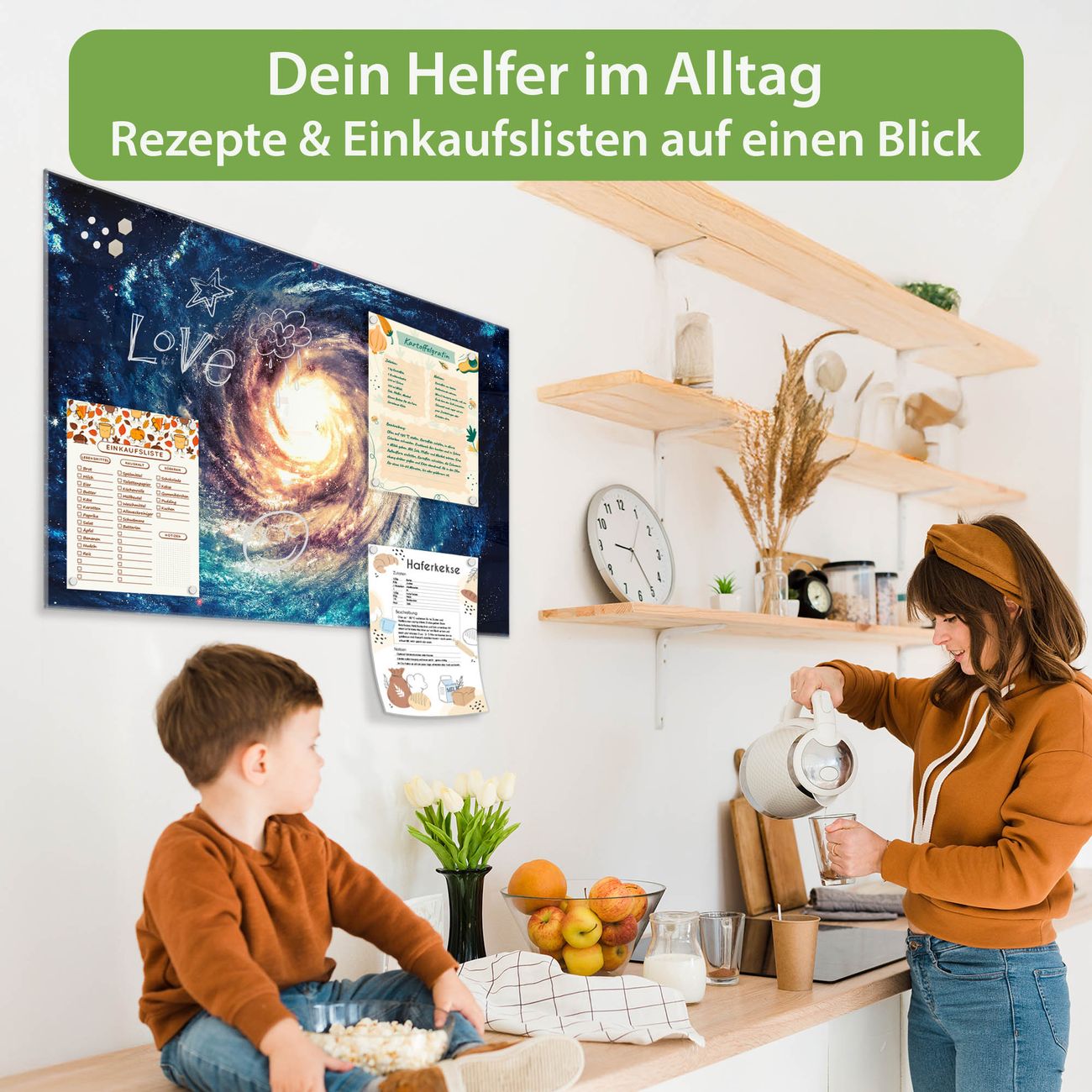 Auf der glatten Glasoberfläche lassen sich Termine, Rezepte oder Notizen ganz einfach mit Kreidestiften festhalten und rückstandslos entfernen. Starke Neodym-Magnete halten Ihre wichtigsten Erinnerungen sicher an Ort und Stelle. So entsteht Ihre ganz persönliche Ideenwand - jeden Tag neu.