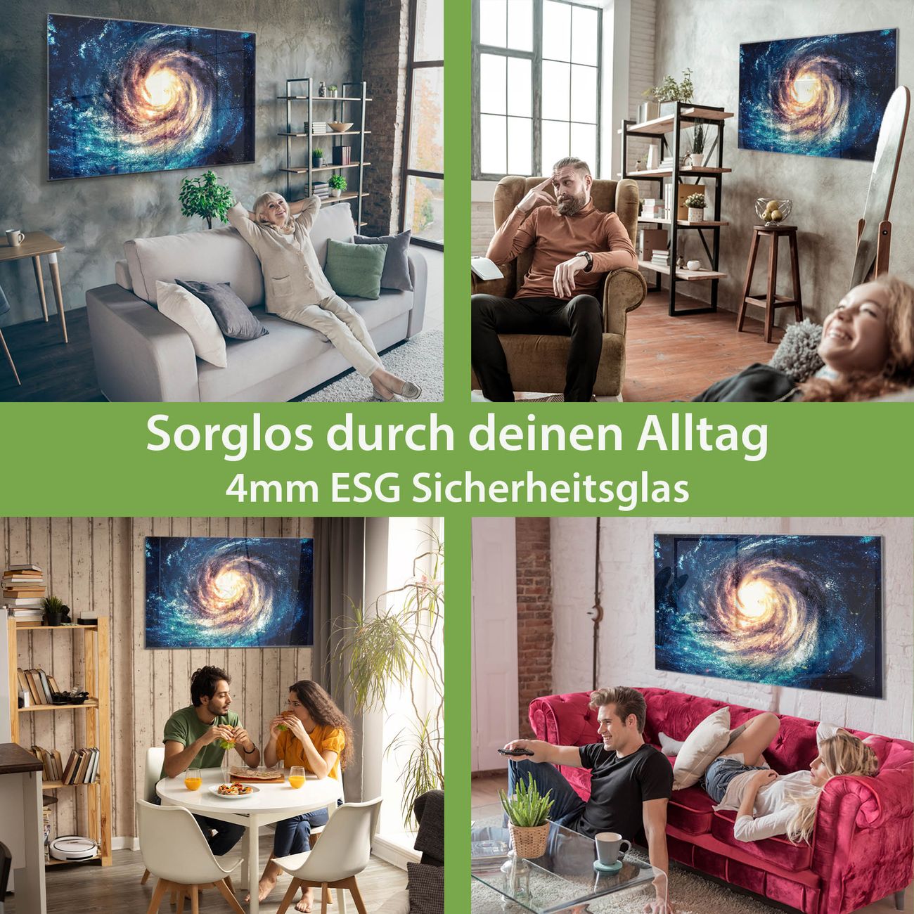 - Material: 4mm Sicherheitsglas mit Metallrückwand