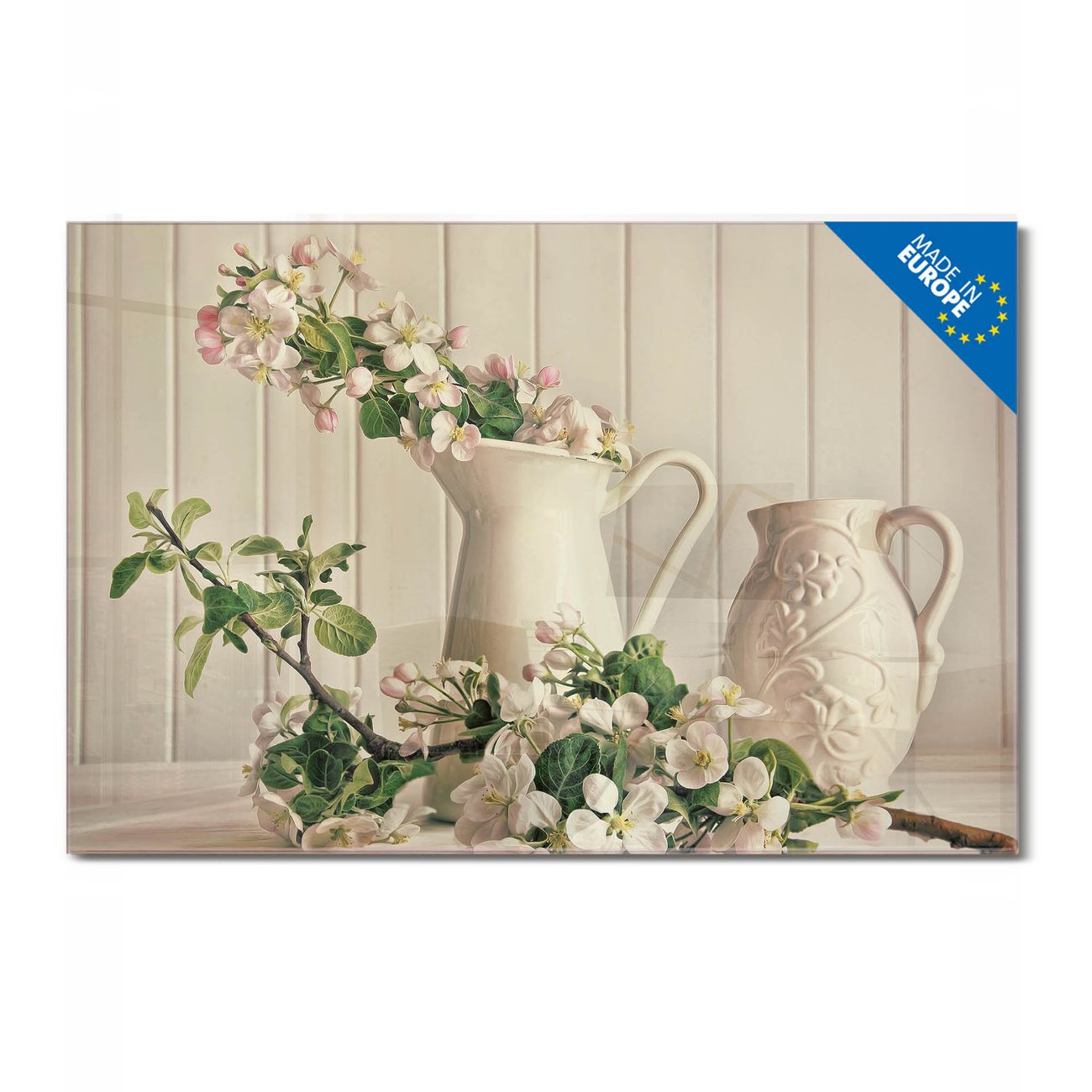 Glas Magnettafel im Querformat Motiv Stillleben Kirschblüten