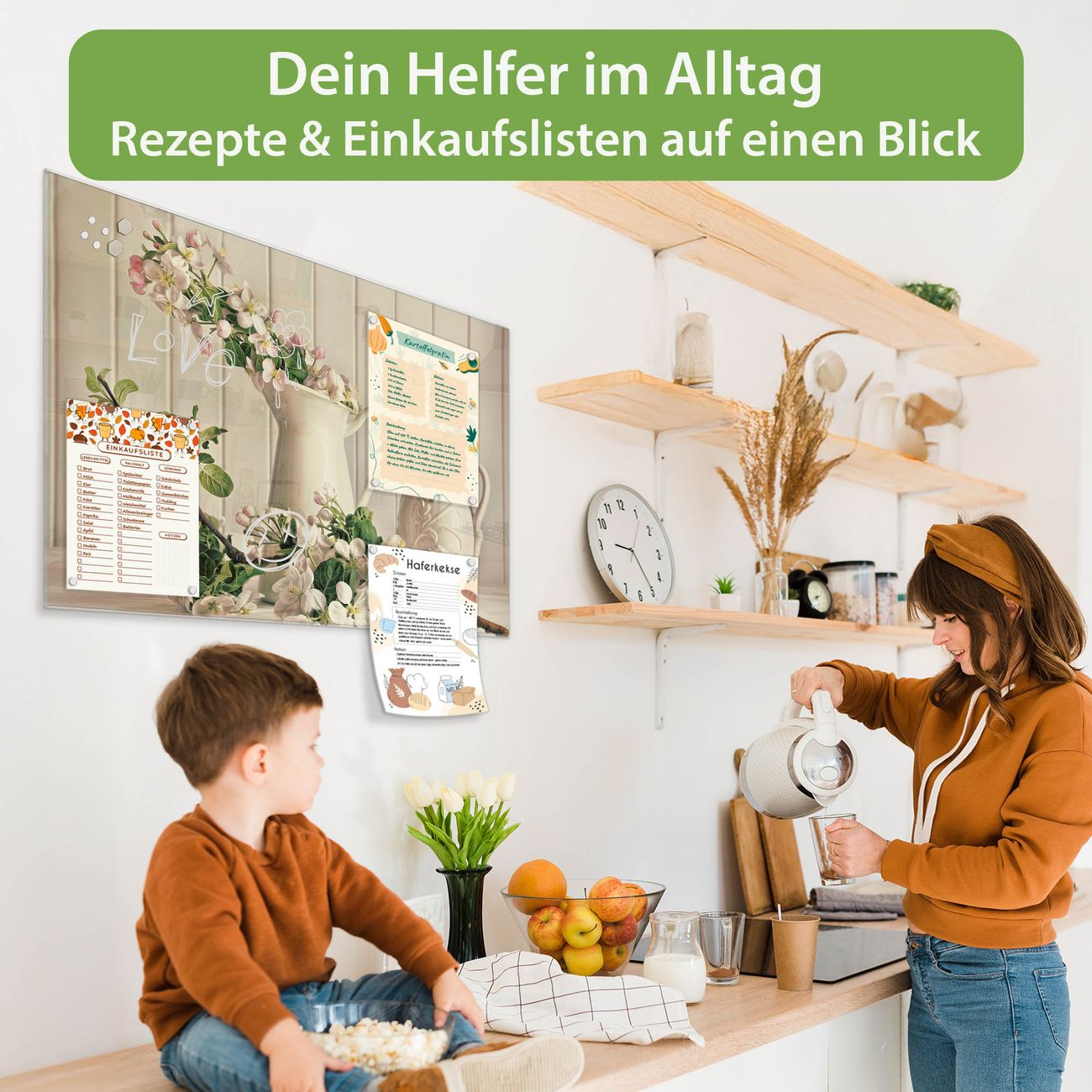 Auf der glatten Glasoberfläche lassen sich Termine, Rezepte oder Notizen ganz einfach mit Kreidestiften festhalten und rückstandslos entfernen. Starke Neodym-Magnete halten Ihre wichtigsten Erinnerungen sicher an Ort und Stelle. So entsteht Ihre ganz persönliche Ideenwand - jeden Tag neu.