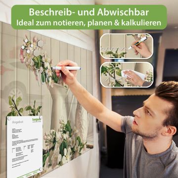 Die banjado Glas Magnettafel mit dem Motiv Motiv Stillleben Kirschblüten verbindet Funktionalität mit Stil. Sie ersetzt das Zettelchaos durch klare Strukturen und bringt dabei eine warme, natürliche Atmosphäre in Ihr Zuhause. Ob im Büro, in der Küche oder im Eingangsbereich - dieses Design-Board zieht Blicke an und sorgt für Ordnung mit Charakter.