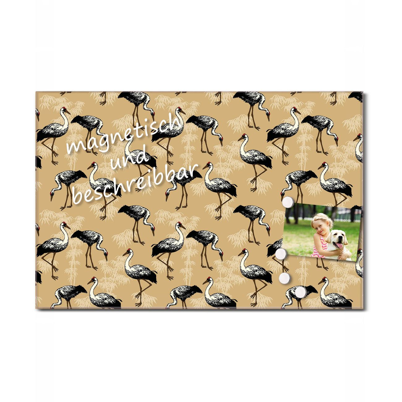 Glas Magnettafel im Querformat Motiv Störche