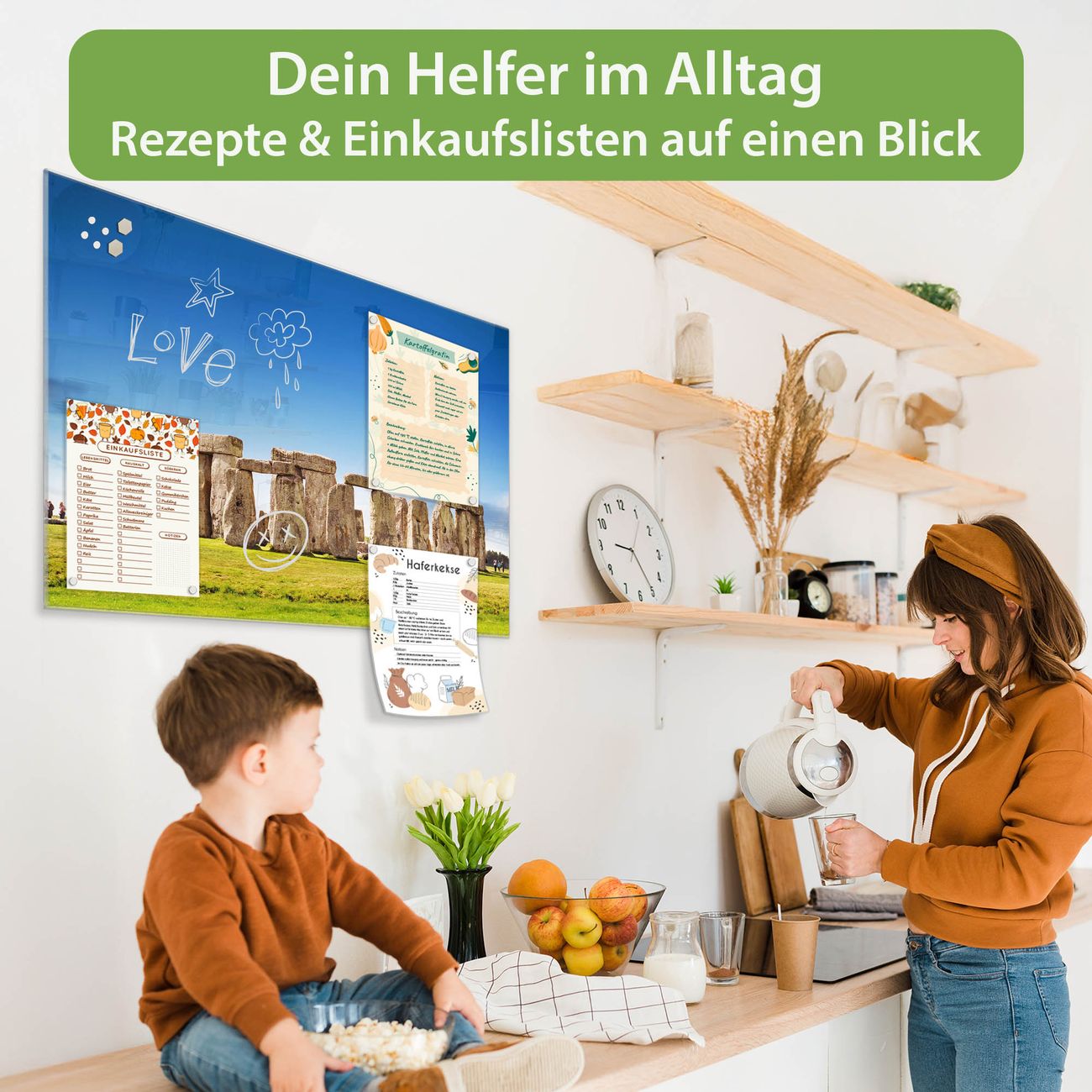 Ein Stück Design, das Ihren Alltag organisiert. Schreiben, heften, inspirieren - alles an einem Ort. Qualität, die man spürt. Montage leicht gemacht. Handwerk mit Herz - veredelt in Sachsen. Einzigartiges Design mit Motiv Motiv Stonehenge Beschreibbare Glasoberfläche, leicht zu reinigen Starke Magnetkraft durch Stahlrückwand Inklusive 4 Neodym-Magneten Flexible Montageoptionen Handveredelt in Sachsen - Qualität, die bleibt