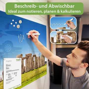 Die banjado Glas Magnettafel mit dem Motiv Motiv Stonehenge verbindet Funktionalität mit Stil. Sie ersetzt das Zettelchaos durch klare Strukturen und bringt dabei eine warme, natürliche Atmosphäre in Ihr Zuhause. Ob im Büro, in der Küche oder im Eingangsbereich - dieses Design-Board zieht Blicke an und sorgt für Ordnung mit Charakter.