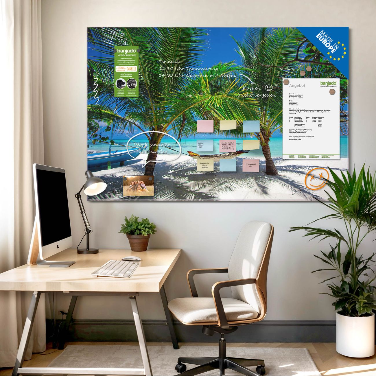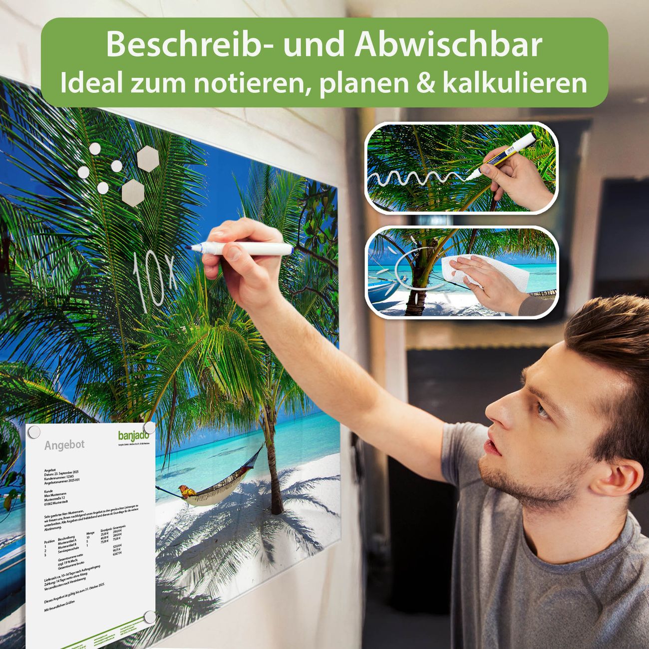 Die banjado Glas Magnettafel mit dem Motiv Motiv Strand verbindet Funktionalität mit Stil. Sie ersetzt das Zettelchaos durch klare Strukturen und bringt dabei eine warme, natürliche Atmosphäre in Ihr Zuhause. Ob im Büro, in der Küche oder im Eingangsbereich - dieses Design-Board zieht Blicke an und sorgt für Ordnung mit Charakter.