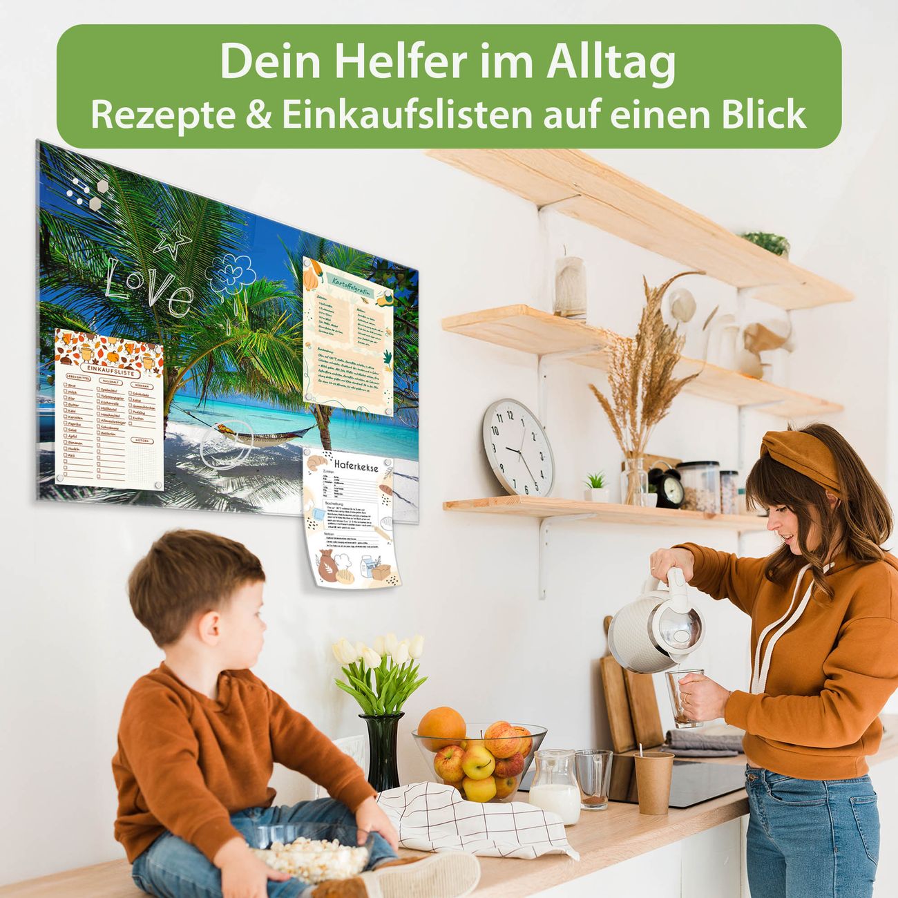 Ein Stück Design, das Ihren Alltag organisiert. Schreiben, heften, inspirieren - alles an einem Ort. Qualität, die man spürt. Montage leicht gemacht. Handwerk mit Herz - veredelt in Sachsen. Einzigartiges Design mit Motiv Motiv Strand Beschreibbare Glasoberfläche, leicht zu reinigen Starke Magnetkraft durch Stahlrückwand Inklusive 4 Neodym-Magneten Flexible Montageoptionen Handveredelt in Sachsen - Qualität, die bleibt