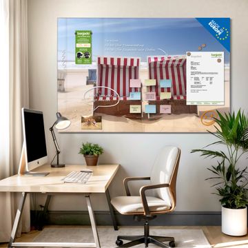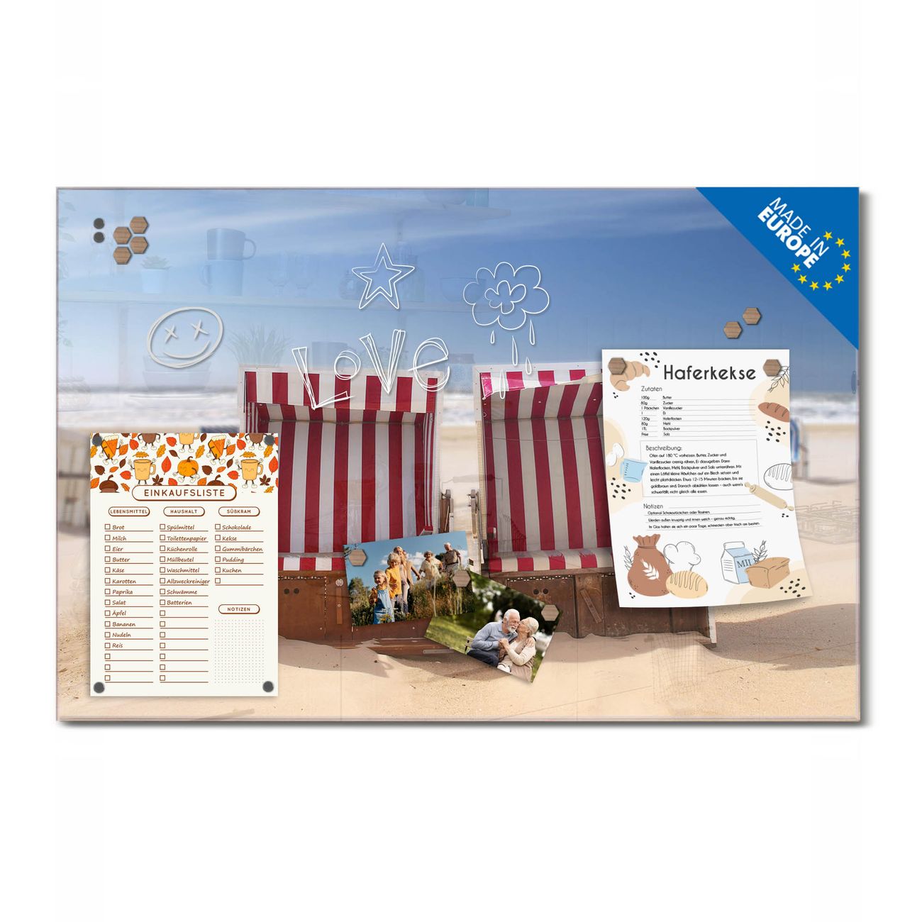 Glas Magnettafel im Querformat Motiv Strandkörbe