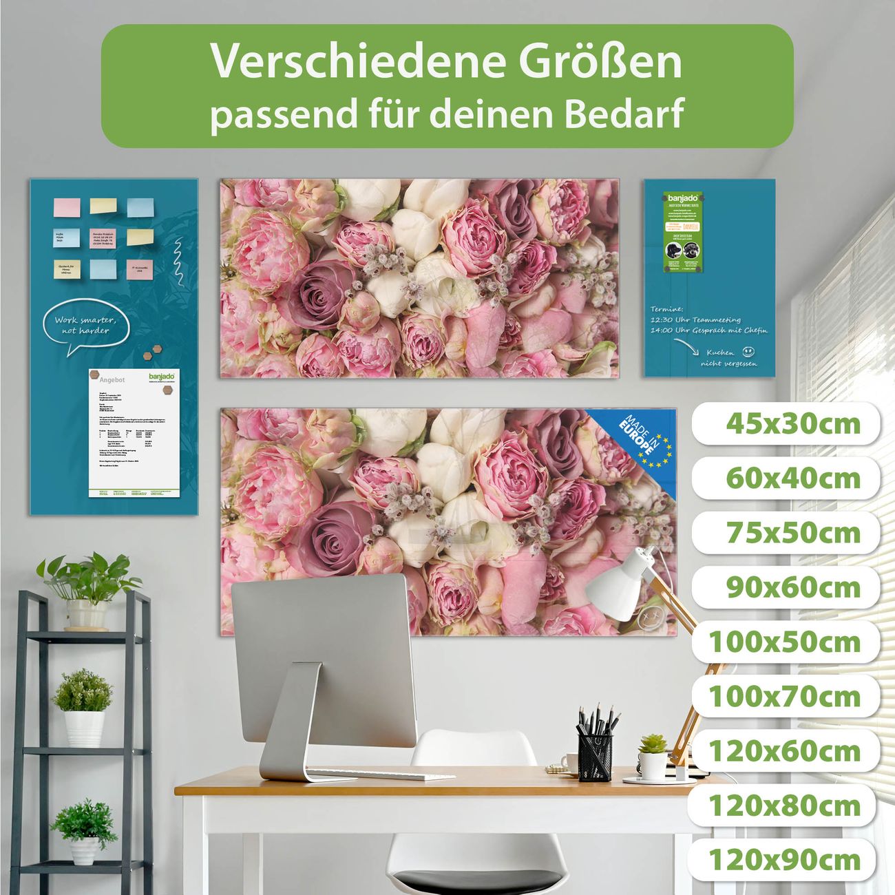 Ein Stück Design, das Ihren Alltag organisiert. Schreiben, heften, inspirieren - alles an einem Ort. Qualität, die man spürt. Montage leicht gemacht. Handwerk mit Herz - veredelt in Sachsen. Einzigartiges Design mit Motiv Motiv Strauss Rosen Beschreibbare Glasoberfläche, leicht zu reinigen Starke Magnetkraft durch Stahlrückwand Inklusive 4 Neodym-Magneten Flexible Montageoptionen Handveredelt in Sachsen - Qualität, die bleibt
