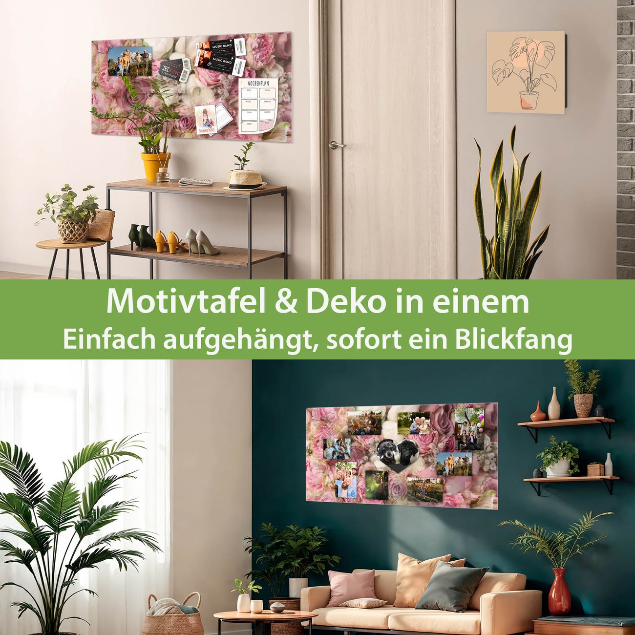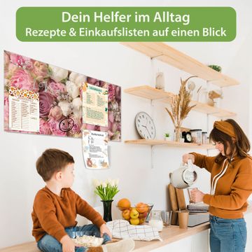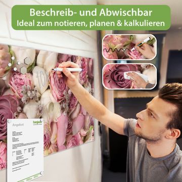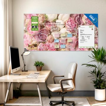 Die banjado Glas Magnettafel mit dem Motiv Motiv Strauss Rosen verbindet Funktionalität mit Stil. Sie ersetzt das Zettelchaos durch klare Strukturen und bringt dabei eine warme, natürliche Atmosphäre in Ihr Zuhause. Ob im Büro, in der Küche oder im Eingangsbereich - dieses Design-Board zieht Blicke an und sorgt für Ordnung mit Charakter.