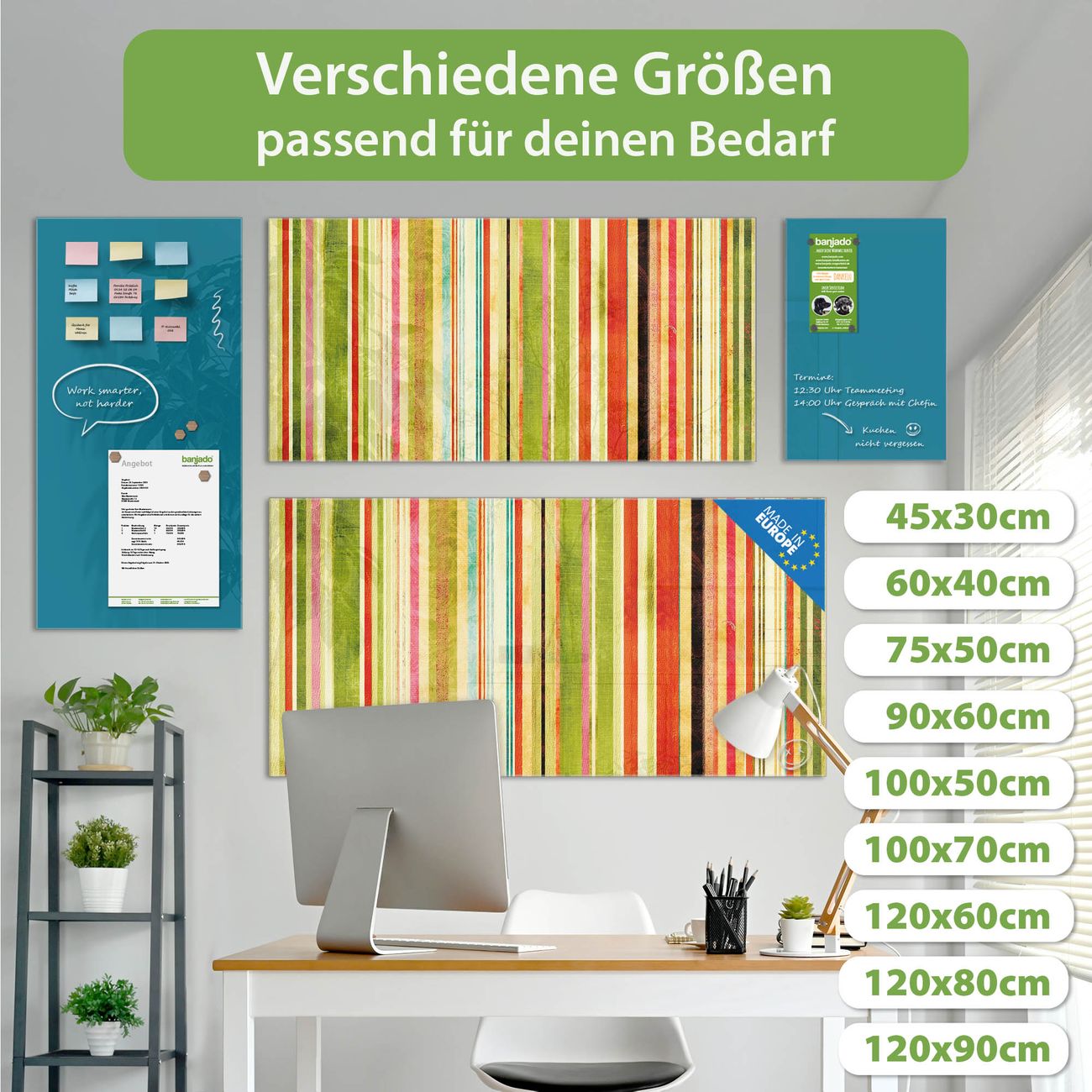 Jede Glas Magnettafel wird in unserer Werkstatt von Hand gefertigt und sorgfältig geprüft. So erhalten Sie ein echtes Qualitätsprodukt, das Funktion und Ästhetik perfekt vereint.?? Warum banjado?