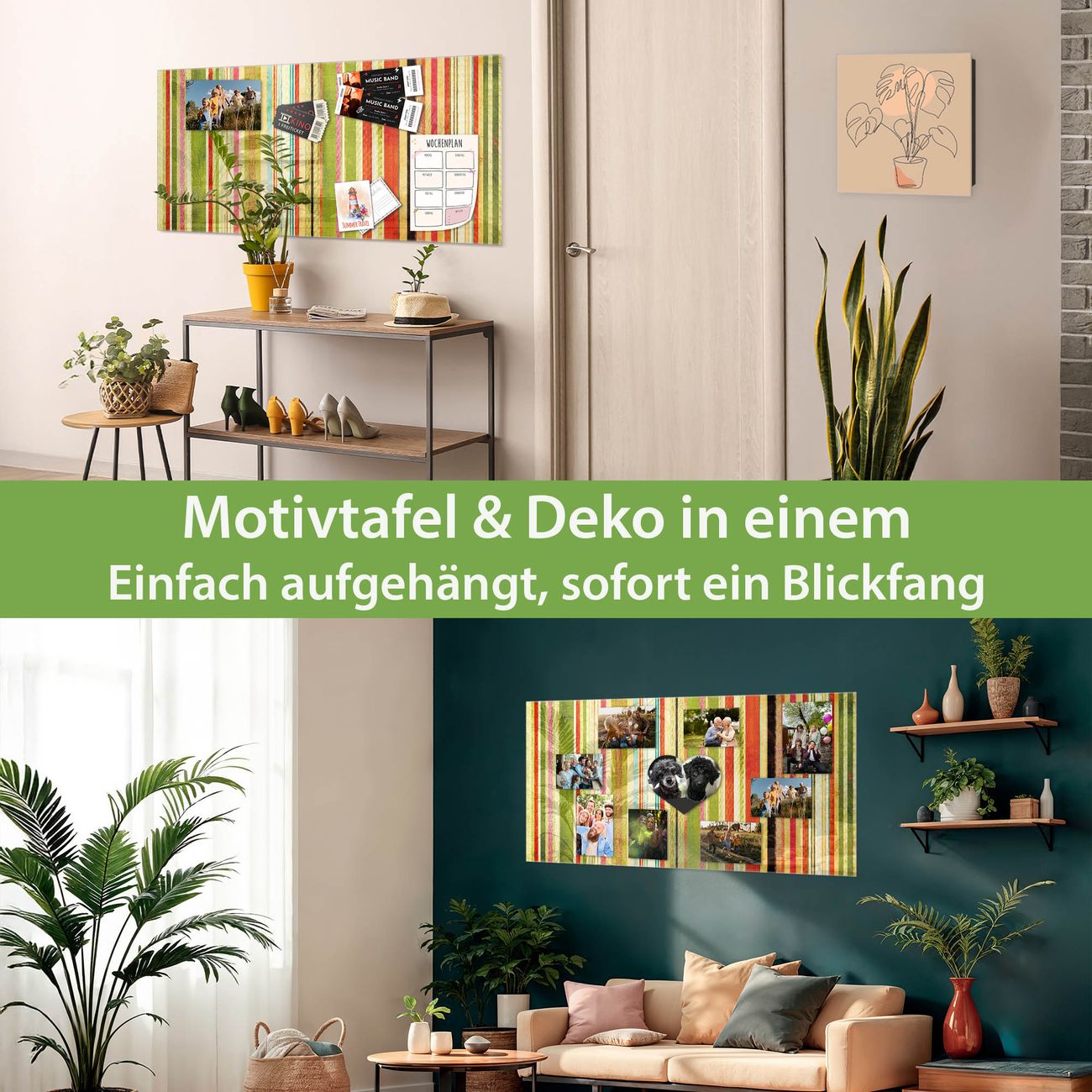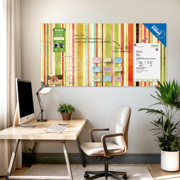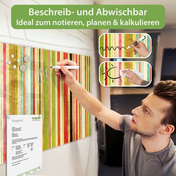 Die banjado Glas Magnettafel mit dem Motiv Motiv Streifen verbindet Funktionalität mit Stil. Sie ersetzt das Zettelchaos durch klare Strukturen und bringt dabei eine warme, natürliche Atmosphäre in Ihr Zuhause. Ob im Büro, in der Küche oder im Eingangsbereich - dieses Design-Board zieht Blicke an und sorgt für Ordnung mit Charakter.
