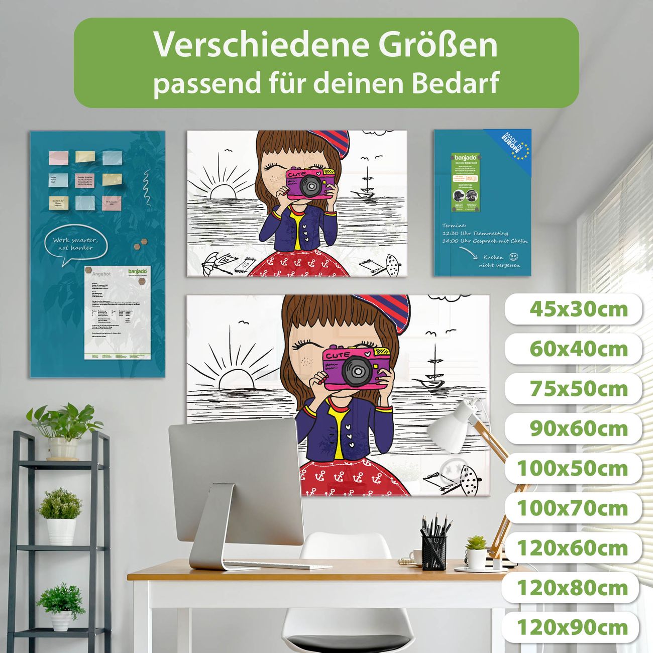 Jede Glas Magnettafel wird in unserer Werkstatt von Hand gefertigt und sorgfältig geprüft. So erhalten Sie ein echtes Qualitätsprodukt, das Funktion und Ästhetik perfekt vereint.?? Warum banjado?