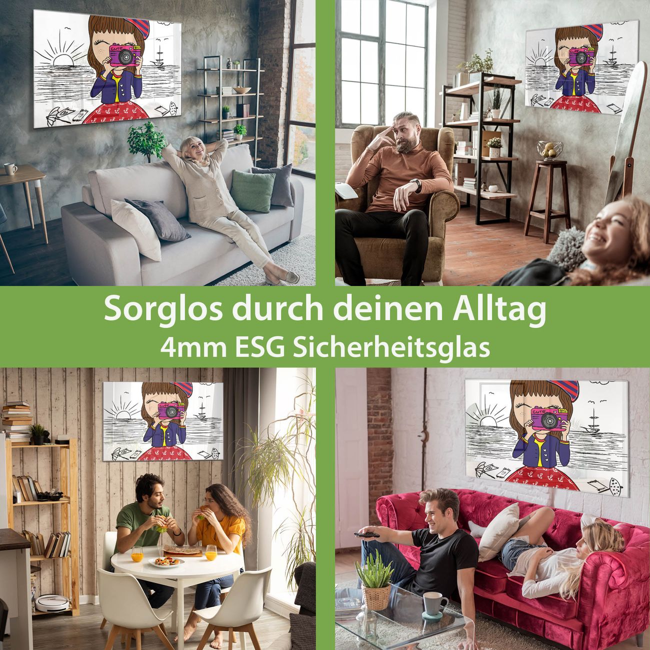- Material: 4mm Sicherheitsglas mit Metallrückwand