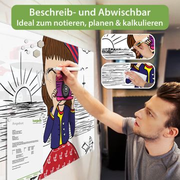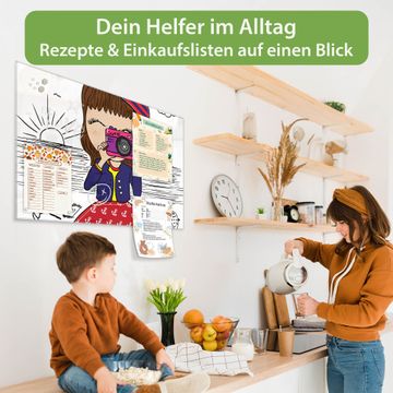 Auf der glatten Glasoberfläche lassen sich Termine, Rezepte oder Notizen ganz einfach mit Kreidestiften festhalten und rückstandslos entfernen. Starke Neodym-Magnete halten Ihre wichtigsten Erinnerungen sicher an Ort und Stelle. So entsteht Ihre ganz persönliche Ideenwand - jeden Tag neu.