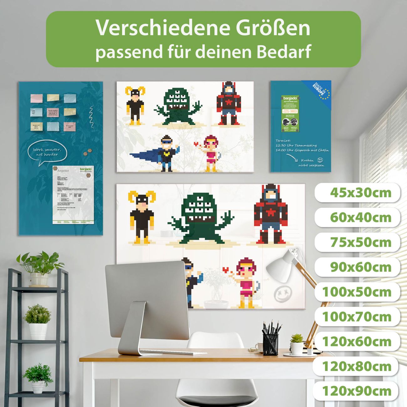 Ein Stück Design, das Ihren Alltag organisiert. Schreiben, heften, inspirieren - alles an einem Ort. Qualität, die man spürt. Montage leicht gemacht. Handwerk mit Herz - veredelt in Sachsen. Einzigartiges Design mit Motiv Motiv Superhelden Beschreibbare Glasoberfläche, leicht zu reinigen Starke Magnetkraft durch Stahlrückwand Inklusive 4 Neodym-Magneten Flexible Montageoptionen Handveredelt in Sachsen - Qualität, die bleibt