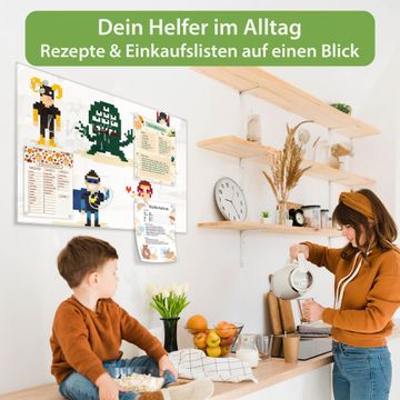Auf der glatten Glasoberfläche lassen sich Termine, Rezepte oder Notizen ganz einfach mit Kreidestiften festhalten und rückstandslos entfernen. Starke Neodym-Magnete halten Ihre wichtigsten Erinnerungen sicher an Ort und Stelle. So entsteht Ihre ganz persönliche Ideenwand - jeden Tag neu.