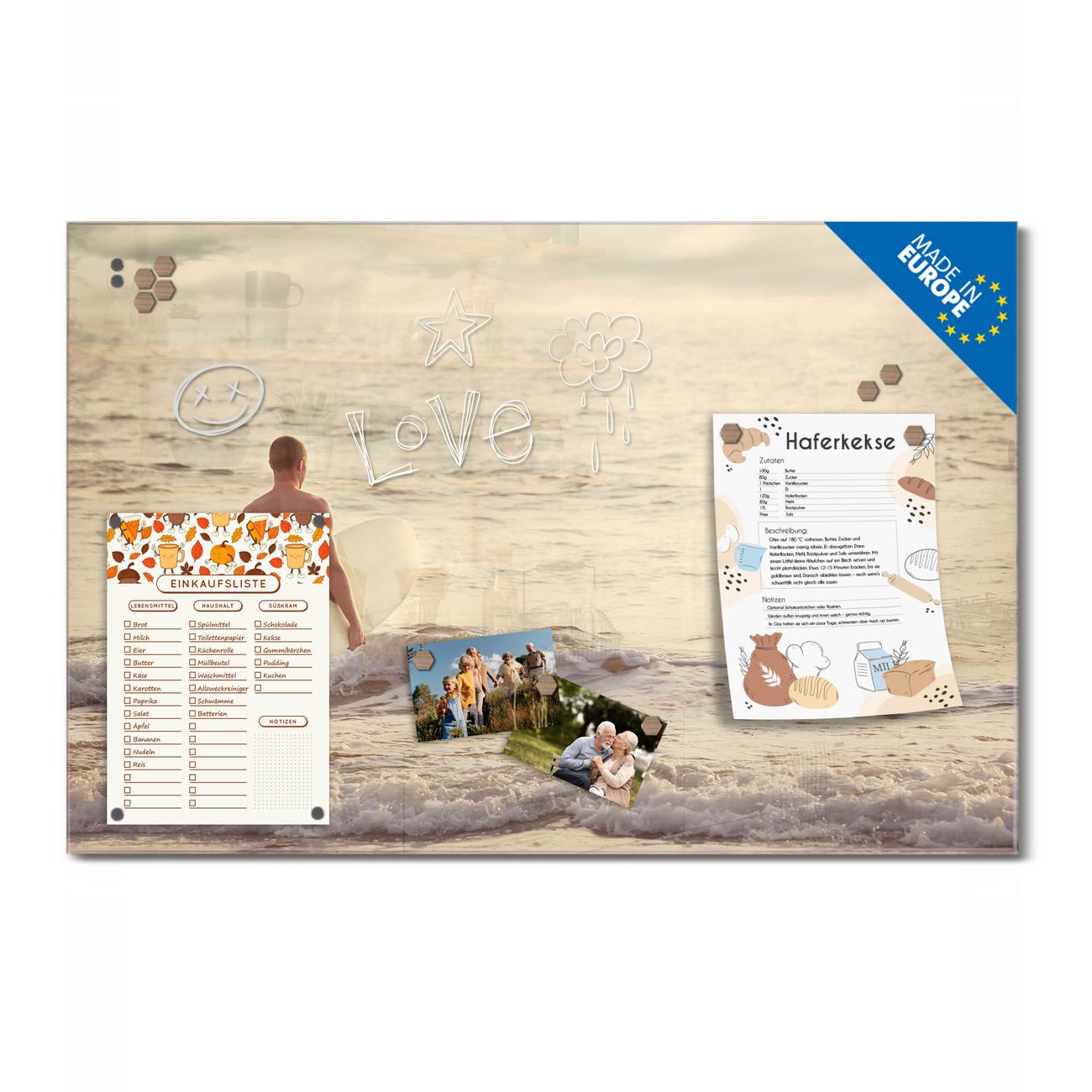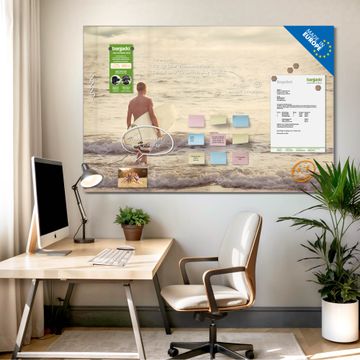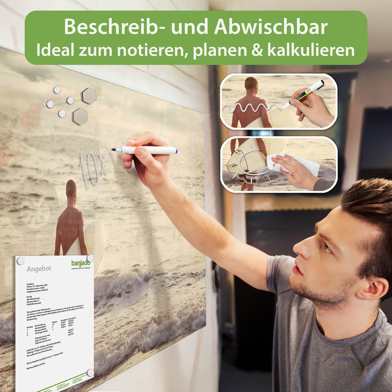 Die banjado Glas Magnettafel mit dem Motiv Motiv Wellenreiten Gehen 2 verbindet Funktionalität mit Stil. Sie ersetzt das Zettelchaos durch klare Strukturen und bringt dabei eine warme, natürliche Atmosphäre in Ihr Zuhause. Ob im Büro, in der Küche oder im Eingangsbereich - dieses Design-Board zieht Blicke an und sorgt für Ordnung mit Charakter.