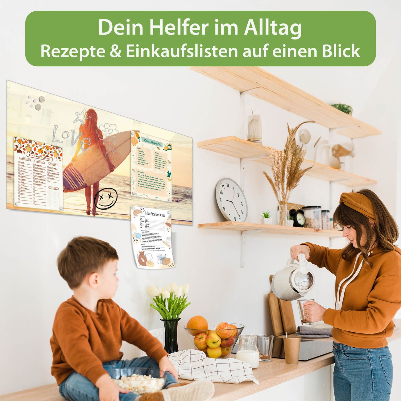 Ein Stück Design, das Ihren Alltag organisiert. Schreiben, heften, inspirieren - alles an einem Ort. Qualität, die man spürt. Montage leicht gemacht. Handwerk mit Herz - veredelt in Sachsen. Einzigartiges Design mit Motiv Motiv Surfer Girl Beschreibbare Glasoberfläche, leicht zu reinigen Starke Magnetkraft durch Stahlrückwand Inklusive 4 Neodym-Magneten Flexible Montageoptionen Handveredelt in Sachsen - Qualität, die bleibt