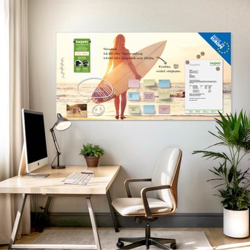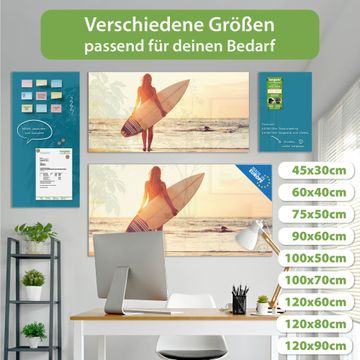 Die banjado Glas Magnettafel mit dem Motiv Motiv Surfer Girl verbindet Funktionalität mit Stil. Sie ersetzt das Zettelchaos durch klare Strukturen und bringt dabei eine warme, natürliche Atmosphäre in Ihr Zuhause. Ob im Büro, in der Küche oder im Eingangsbereich - dieses Design-Board zieht Blicke an und sorgt für Ordnung mit Charakter.