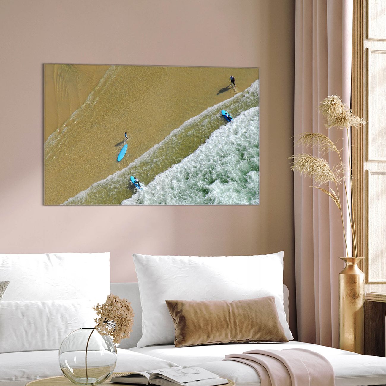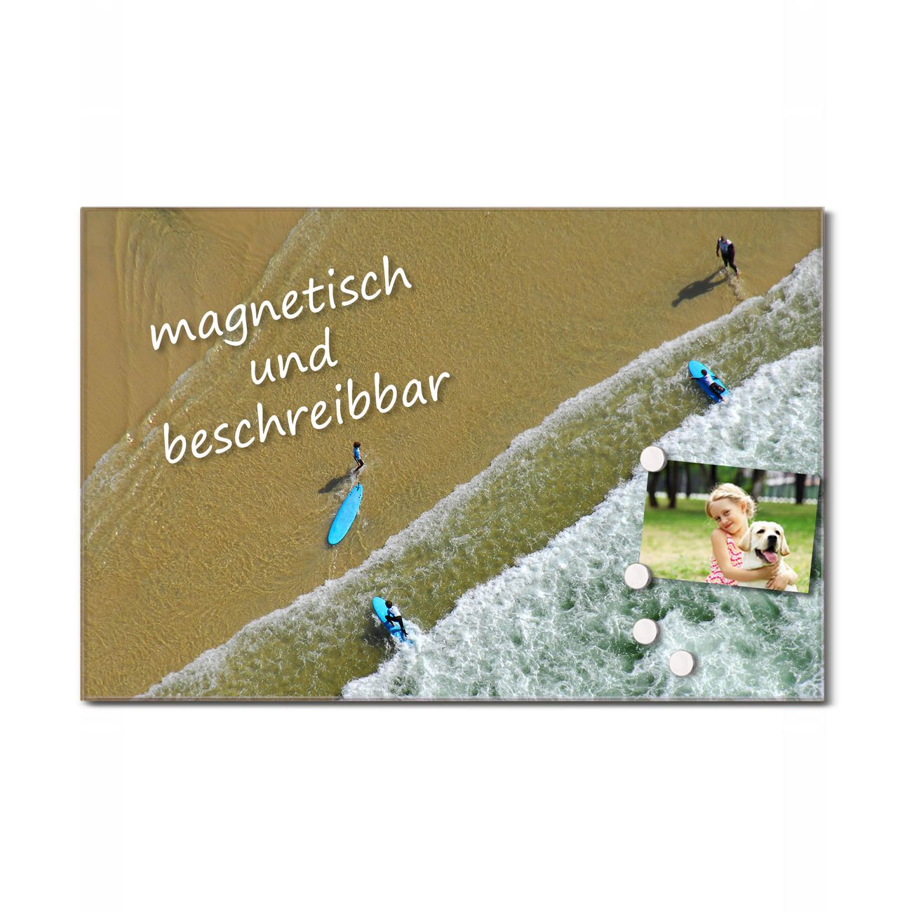 Glas Magnettafel im Querformat Surfer Strand