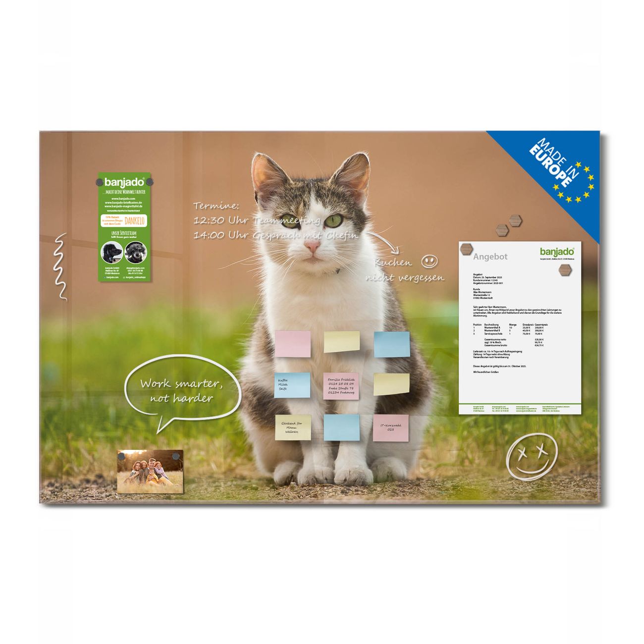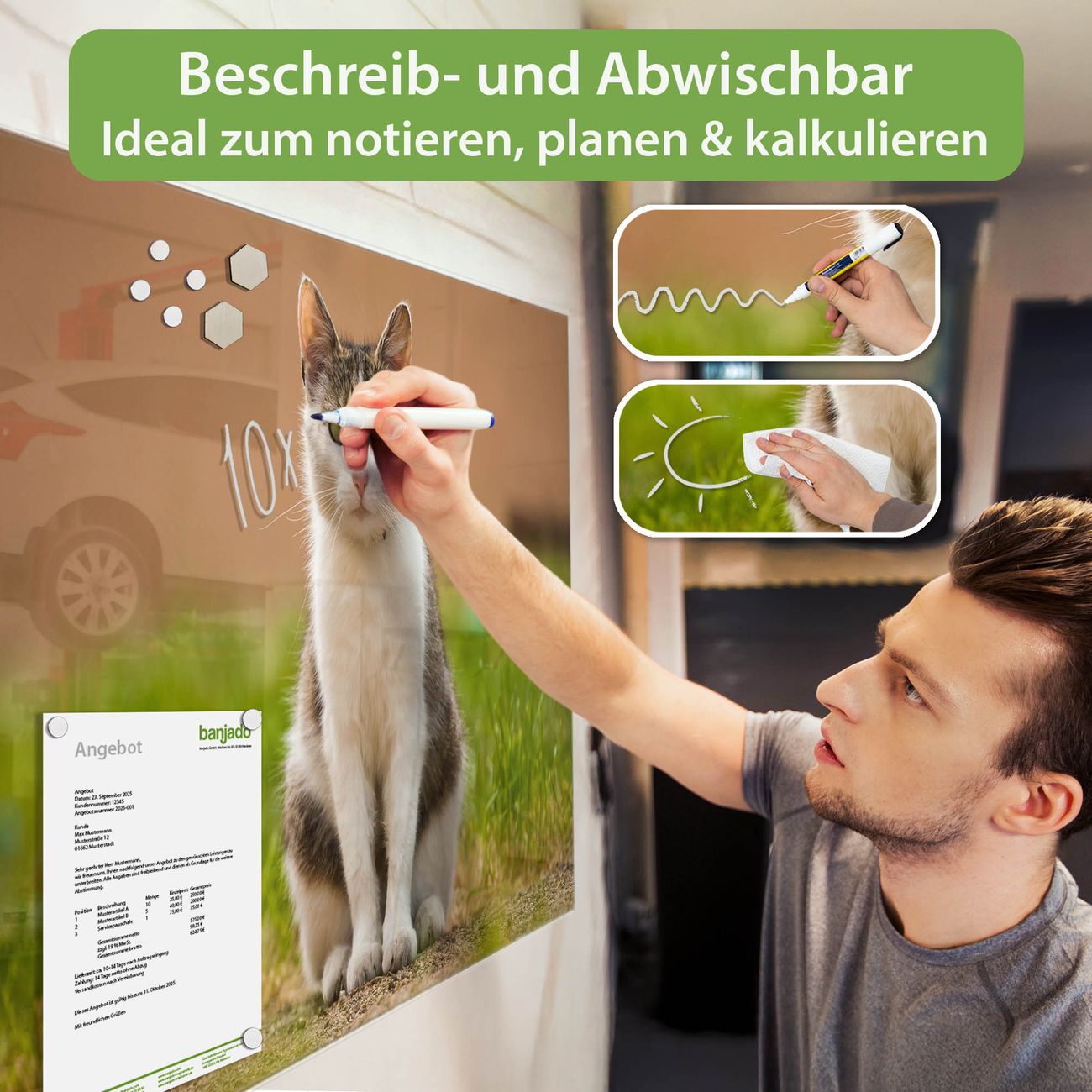 Bitte beachten Sie, dass ausschliessliche spezielle Magnete an der Glastafel haften. Wir empfehlen banjado Neodym Magnete, diese sind durch uns auf Wirksamkeit geprüft.