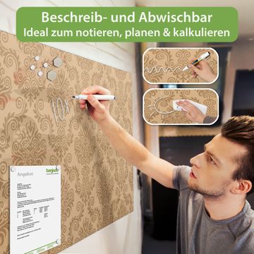 Die banjado Glas Magnettafel mit dem Motiv Motiv Tapete Beige verbindet Funktionalität mit Stil. Sie ersetzt das Zettelchaos durch klare Strukturen und bringt dabei eine warme, natürliche Atmosphäre in Ihr Zuhause. Ob im Büro, in der Küche oder im Eingangsbereich - dieses Design-Board zieht Blicke an und sorgt für Ordnung mit Charakter.