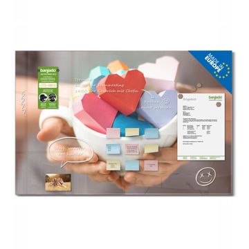 Die banjado Glas Magnettafel mit dem Motiv Motiv Tasse voller Herzen verbindet Funktionalität mit Stil. Sie ersetzt das Zettelchaos durch klare Strukturen und bringt dabei eine warme, natürliche Atmosphäre in Ihr Zuhause. Ob im Büro, in der Küche oder im Eingangsbereich - dieses Design-Board zieht Blicke an und sorgt für Ordnung mit Charakter.