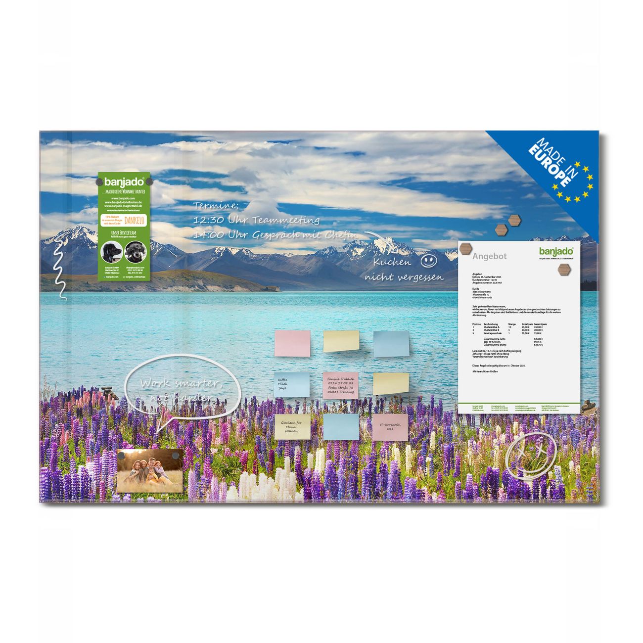 Die banjado Glas Magnettafel mit dem Motiv Motiv Tekapo See verbindet Funktionalität mit Stil. Sie ersetzt das Zettelchaos durch klare Strukturen und bringt dabei eine warme, natürliche Atmosphäre in Ihr Zuhause. Ob im Büro, in der Küche oder im Eingangsbereich - dieses Design-Board zieht Blicke an und sorgt für Ordnung mit Charakter.