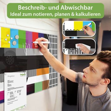 Die banjado Glas Magnettafel mit dem Motiv Motiv Testbild verbindet Funktionalität mit Stil. Sie ersetzt das Zettelchaos durch klare Strukturen und bringt dabei eine warme, natürliche Atmosphäre in Ihr Zuhause. Ob im Büro, in der Küche oder im Eingangsbereich - dieses Design-Board zieht Blicke an und sorgt für Ordnung mit Charakter.
