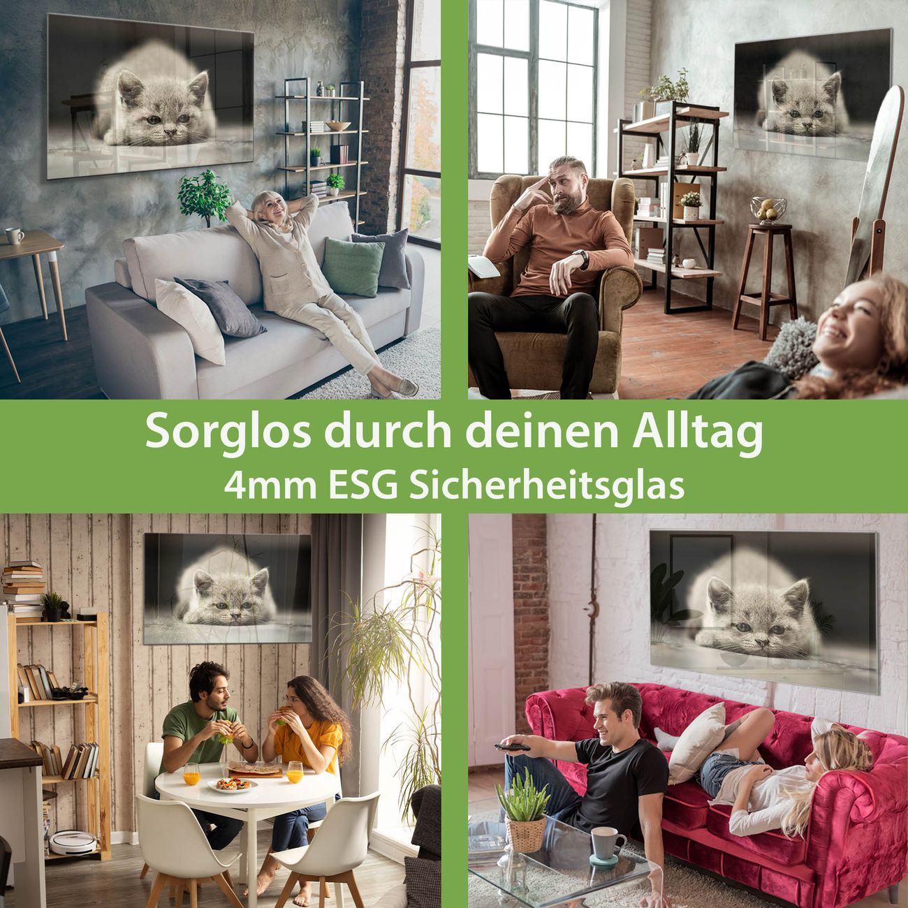 - Material: 4mm Sicherheitsglas mit Metallrückwand