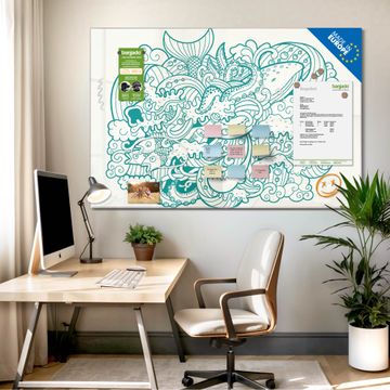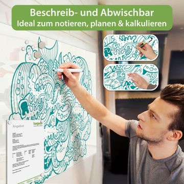 Auf der glatten Glasoberfläche lassen sich Termine, Rezepte oder Notizen ganz einfach mit Kreidestiften festhalten und rückstandslos entfernen. Starke Neodym-Magnete halten Ihre wichtigsten Erinnerungen sicher an Ort und Stelle. So entsteht Ihre ganz persönliche Ideenwand - jeden Tag neu.