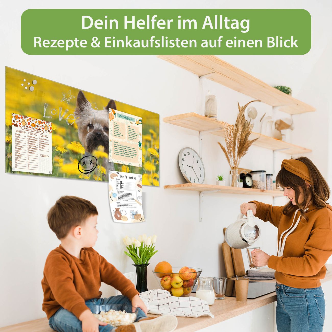 Auf der glatten Glasoberfläche lassen sich Termine, Rezepte oder Notizen ganz einfach mit Kreidestiften festhalten und rückstandslos entfernen. Starke Neodym-Magnete halten Ihre wichtigsten Erinnerungen sicher an Ort und Stelle. So entsteht Ihre ganz persönliche Ideenwand - jeden Tag neu.