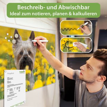 Die banjado Glas Magnettafel mit dem Motiv Motiv Tiffy verbindet Funktionalität mit Stil. Sie ersetzt das Zettelchaos durch klare Strukturen und bringt dabei eine warme, natürliche Atmosphäre in Ihr Zuhause. Ob im Büro, in der Küche oder im Eingangsbereich - dieses Design-Board zieht Blicke an und sorgt für Ordnung mit Charakter.