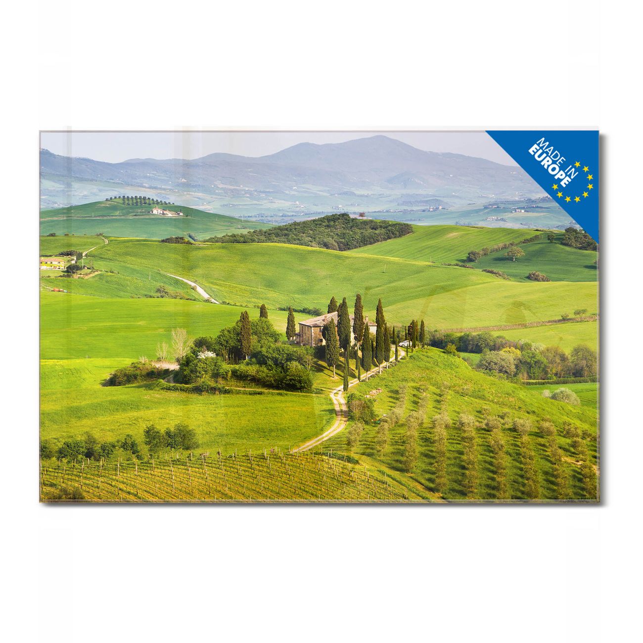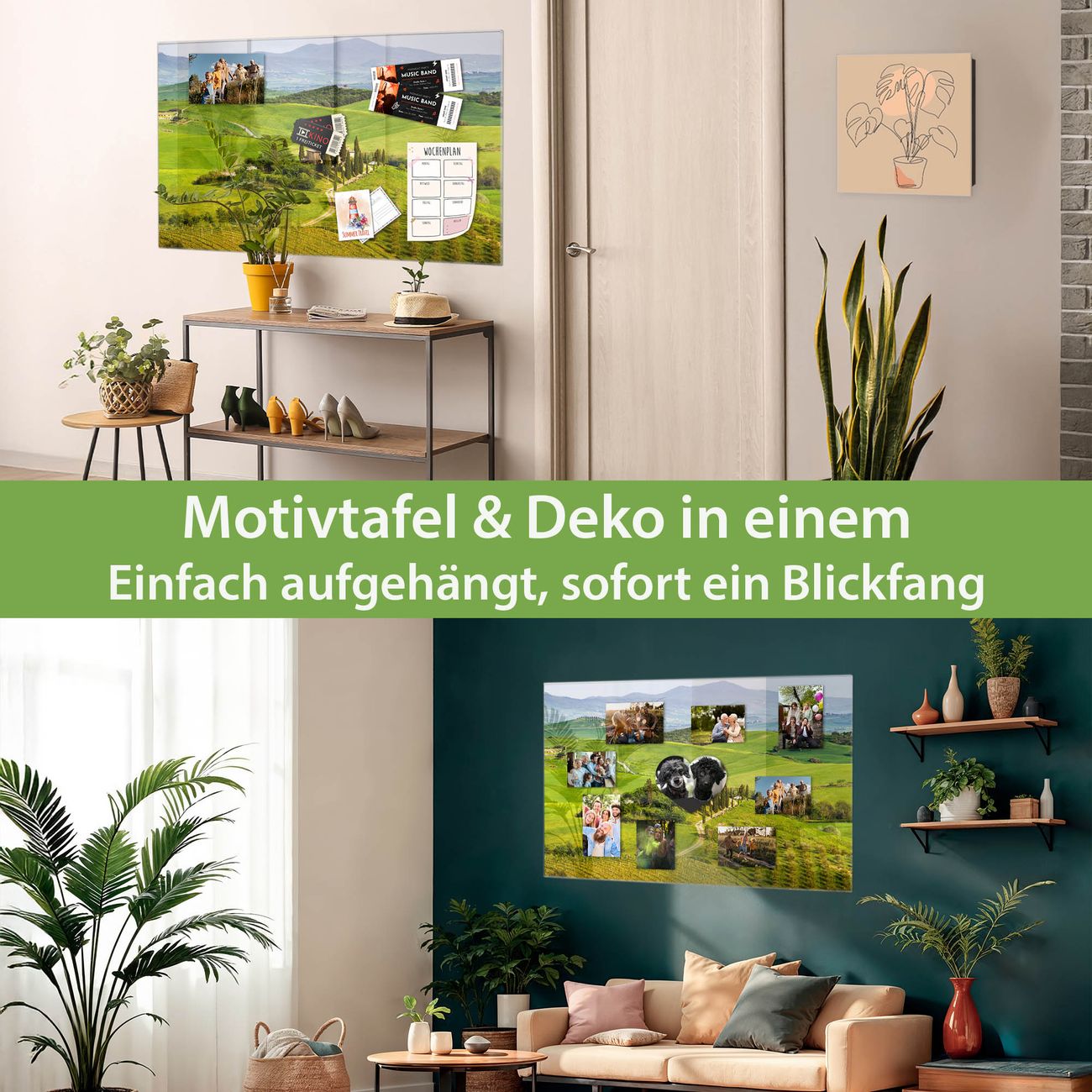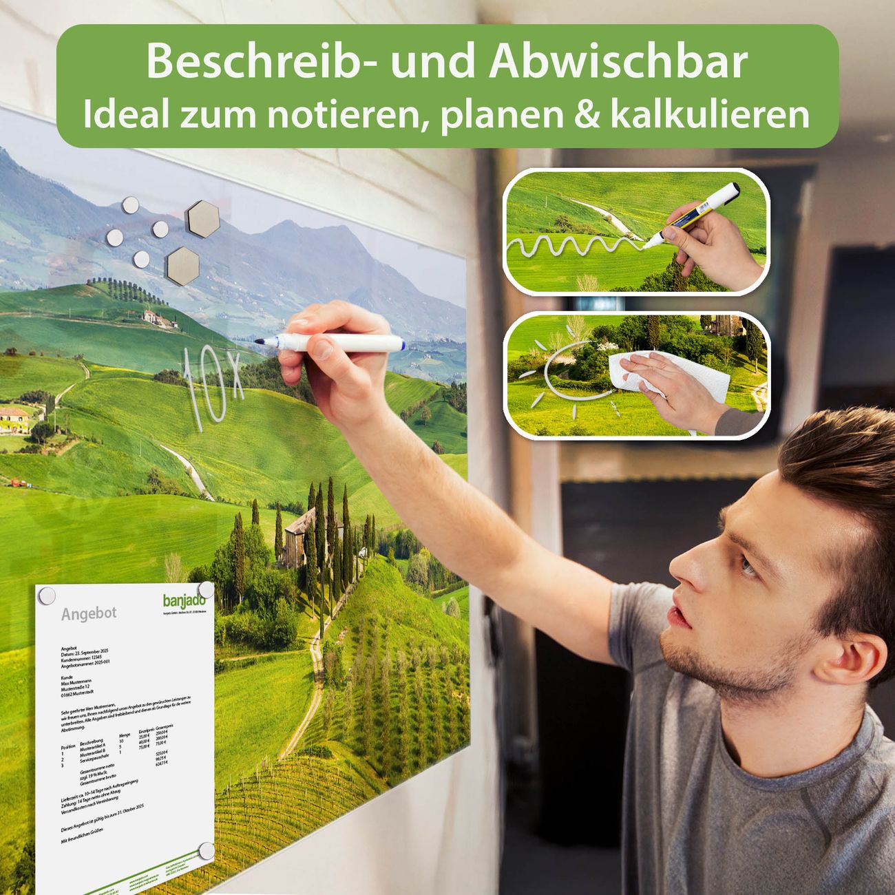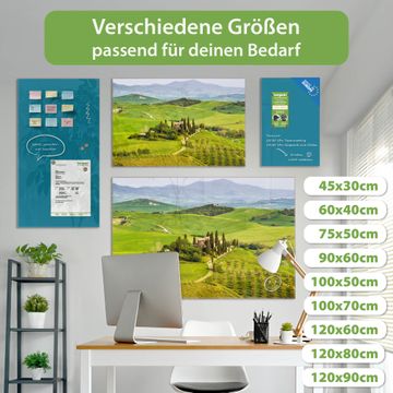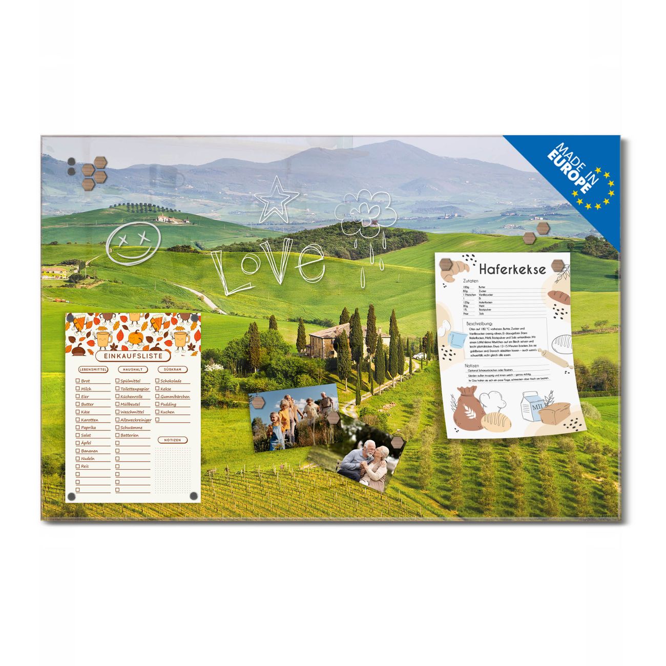 Die banjado Glas Magnettafel mit dem Motiv Motiv Toskana verbindet Funktionalität mit Stil. Sie ersetzt das Zettelchaos durch klare Strukturen und bringt dabei eine warme, natürliche Atmosphäre in Ihr Zuhause. Ob im Büro, in der Küche oder im Eingangsbereich - dieses Design-Board zieht Blicke an und sorgt für Ordnung mit Charakter.