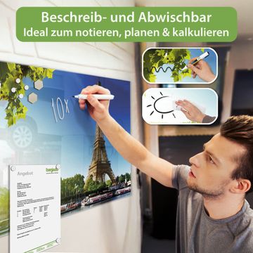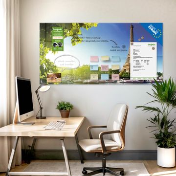 Auf der glatten Glasoberfläche lassen sich Termine, Rezepte oder Notizen ganz einfach mit Kreidestiften festhalten und rückstandslos entfernen. Starke Neodym-Magnete halten Ihre wichtigsten Erinnerungen sicher an Ort und Stelle. So entsteht Ihre ganz persönliche Ideenwand - jeden Tag neu.