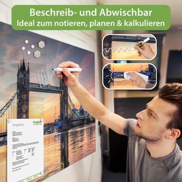 Ein Stück Design, das Ihren Alltag organisiert. Schreiben, heften, inspirieren - alles an einem Ort. Qualität, die man spürt. Montage leicht gemacht. Handwerk mit Herz - veredelt in Sachsen. Einzigartiges Design mit Motiv Motiv Tower Bridge Beschreibbare Glasoberfläche, leicht zu reinigen Starke Magnetkraft durch Stahlrückwand Inklusive 4 Neodym-Magneten Flexible Montageoptionen Handveredelt in Sachsen - Qualität, die bleibt