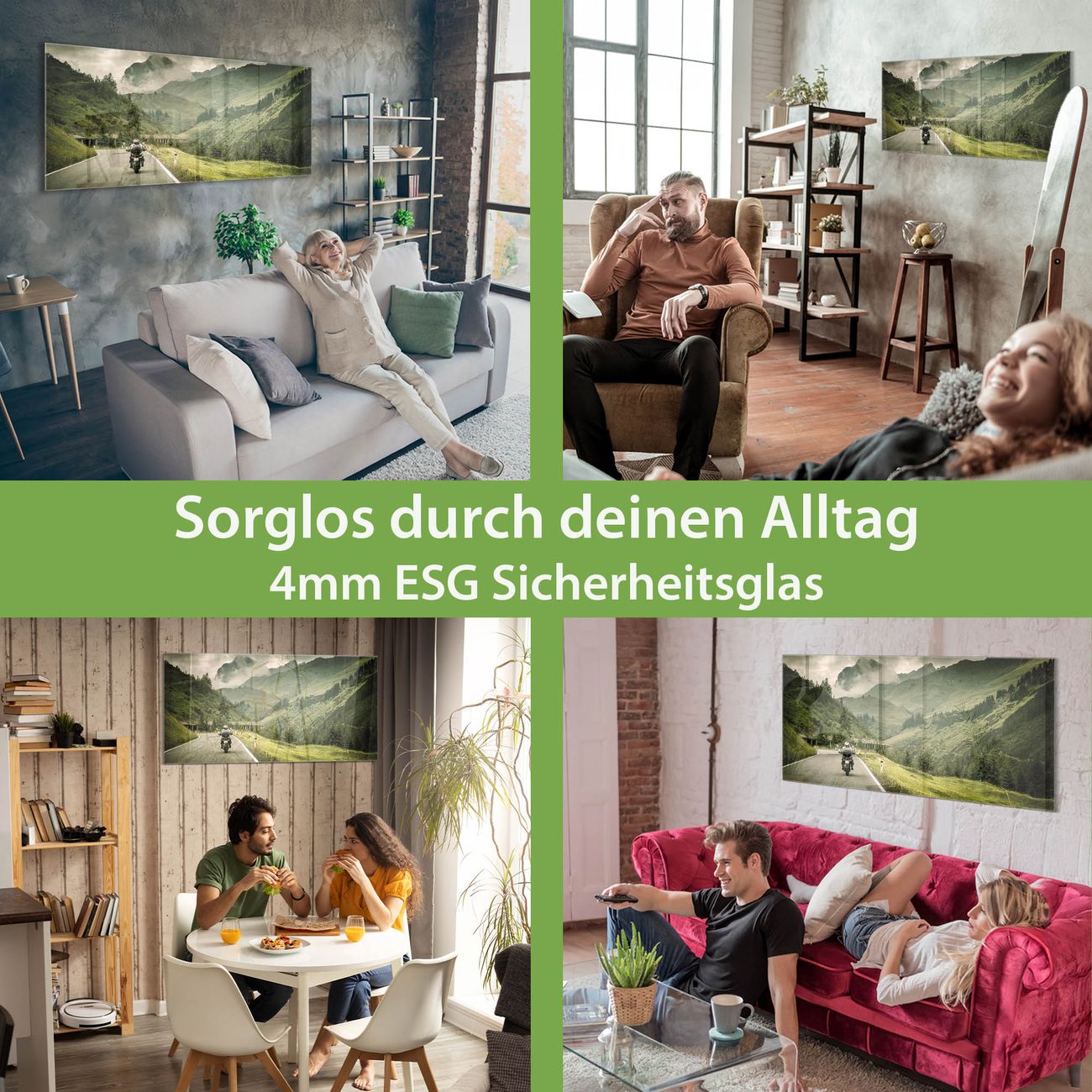 - Material: 4mm Sicherheitsglas mit Metallrückwand