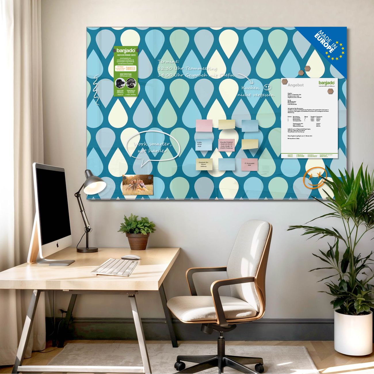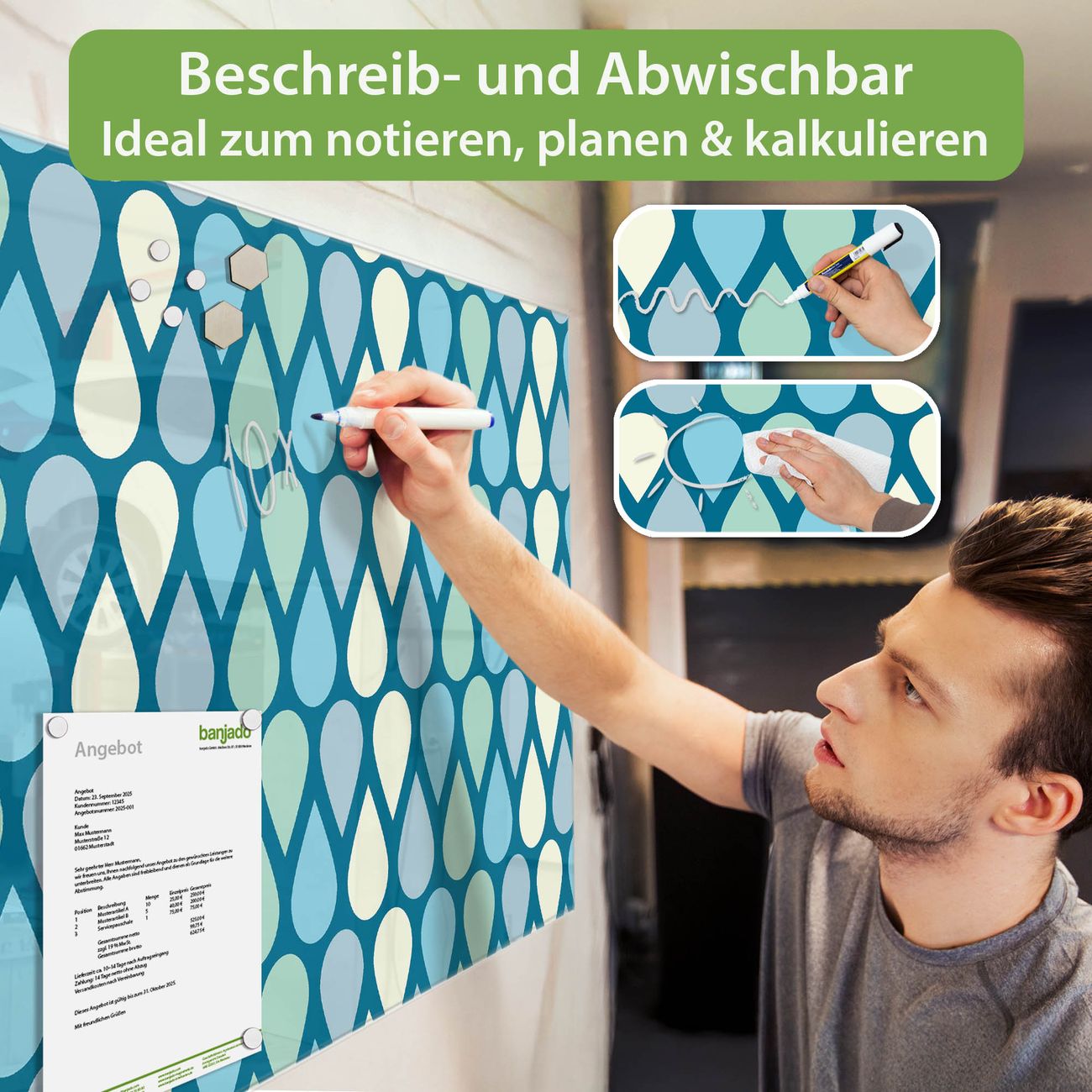 Die banjado Glas Magnettafel mit dem Motiv Motiv Tropfen verbindet Funktionalität mit Stil. Sie ersetzt das Zettelchaos durch klare Strukturen und bringt dabei eine warme, natürliche Atmosphäre in Ihr Zuhause. Ob im Büro, in der Küche oder im Eingangsbereich - dieses Design-Board zieht Blicke an und sorgt für Ordnung mit Charakter.