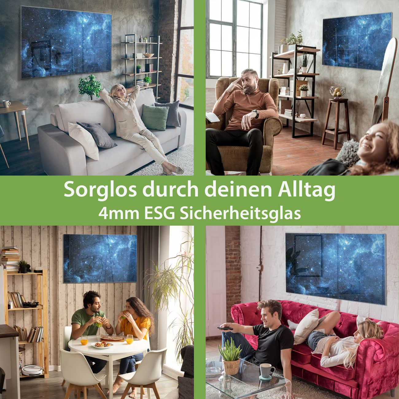 - Material: 4mm Sicherheitsglas mit Metallrückwand