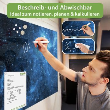 Die banjado Glas Magnettafel mit dem Motiv Motiv Universum verbindet Funktionalität mit Stil. Sie ersetzt das Zettelchaos durch klare Strukturen und bringt dabei eine warme, natürliche Atmosphäre in Ihr Zuhause. Ob im Büro, in der Küche oder im Eingangsbereich - dieses Design-Board zieht Blicke an und sorgt für Ordnung mit Charakter.
