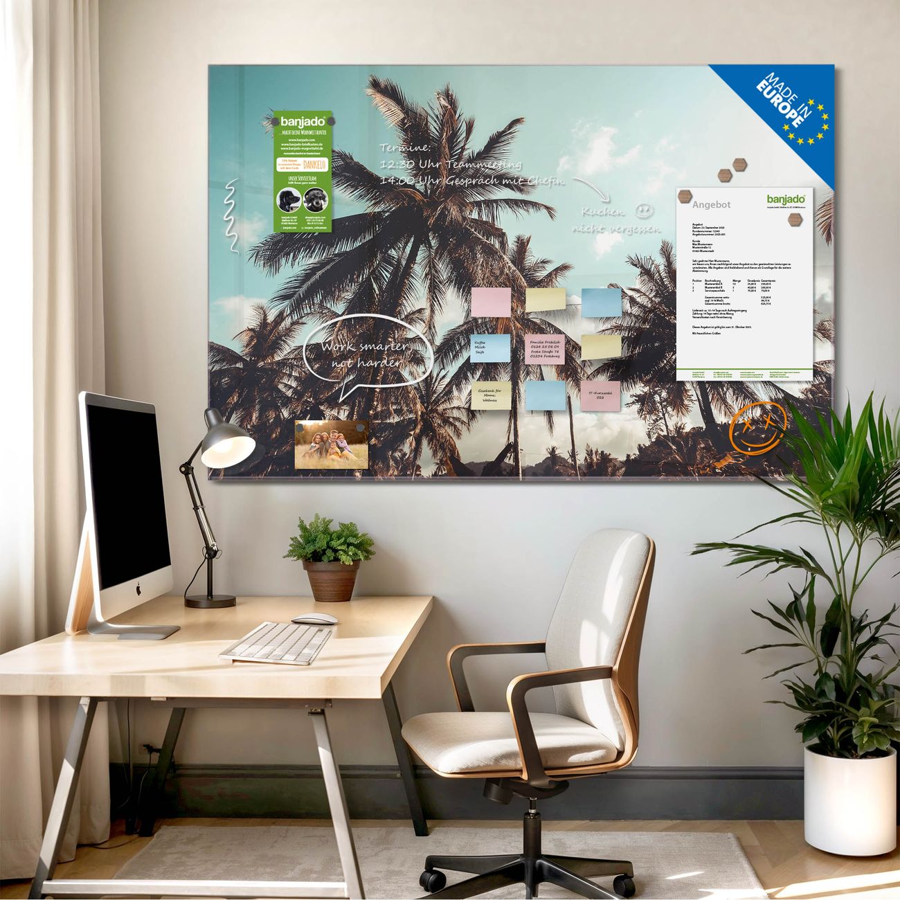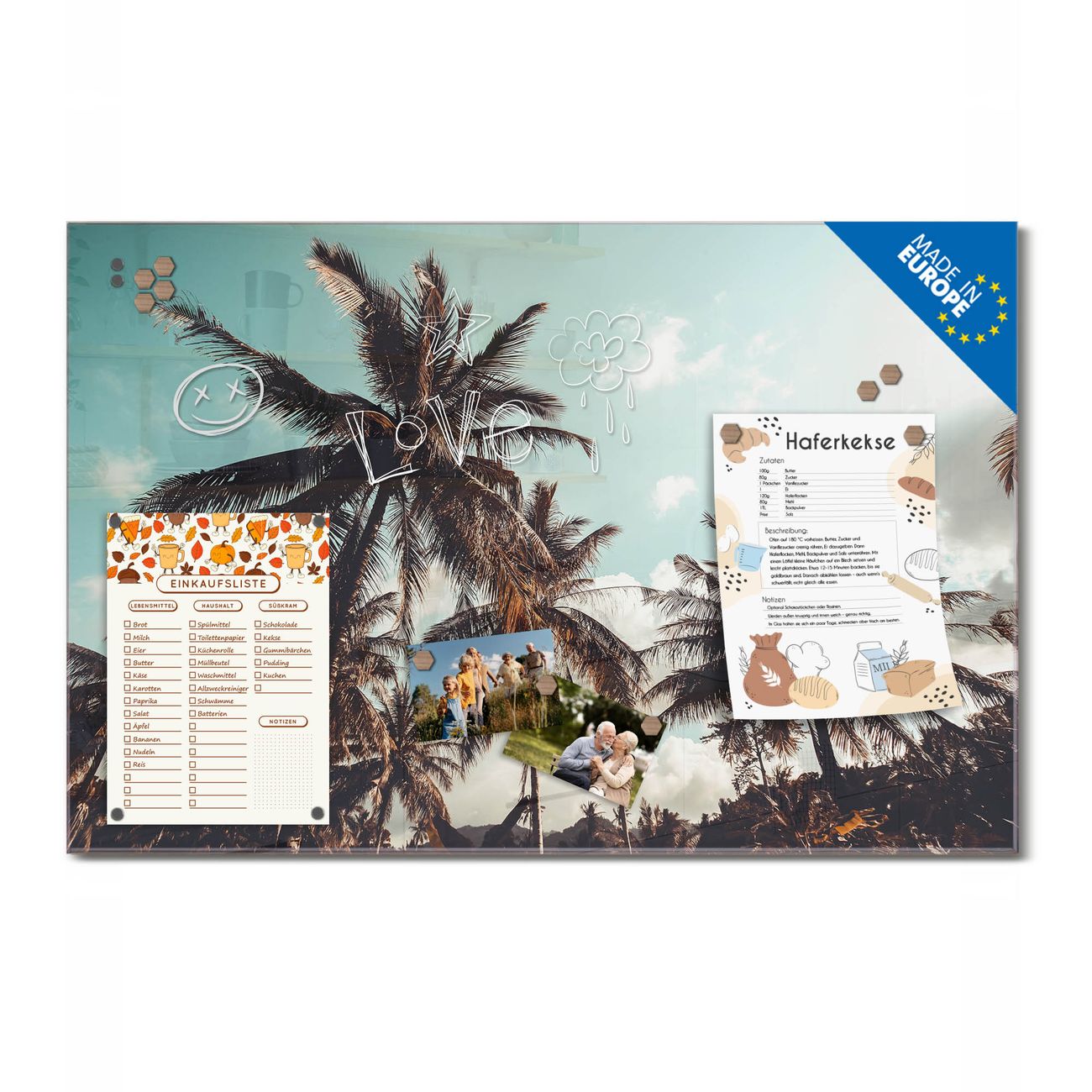 Glas Magnettafel im Querformat Motiv Unter Palmen
