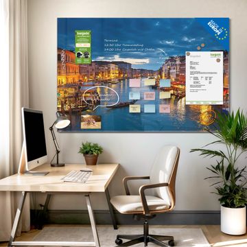 Die banjado Glas Magnettafel mit dem Motiv Motiv Canale Grande Bei Nacht verbindet Funktionalität mit Stil. Sie ersetzt das Zettelchaos durch klare Strukturen und bringt dabei eine warme, natürliche Atmosphäre in Ihr Zuhause. Ob im Büro, in der Küche oder im Eingangsbereich - dieses Design-Board zieht Blicke an und sorgt für Ordnung mit Charakter.