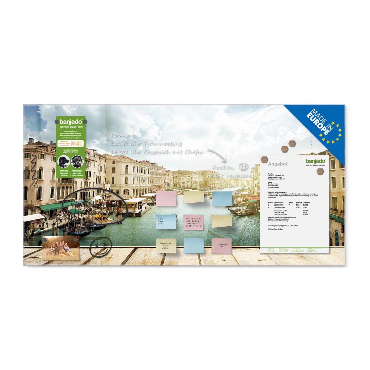 Die banjado Glas Magnettafel mit dem Motiv Motiv Canale Grande verbindet Funktionalität mit Stil. Sie ersetzt das Zettelchaos durch klare Strukturen und bringt dabei eine warme, natürliche Atmosphäre in Ihr Zuhause. Ob im Büro, in der Küche oder im Eingangsbereich - dieses Design-Board zieht Blicke an und sorgt für Ordnung mit Charakter.