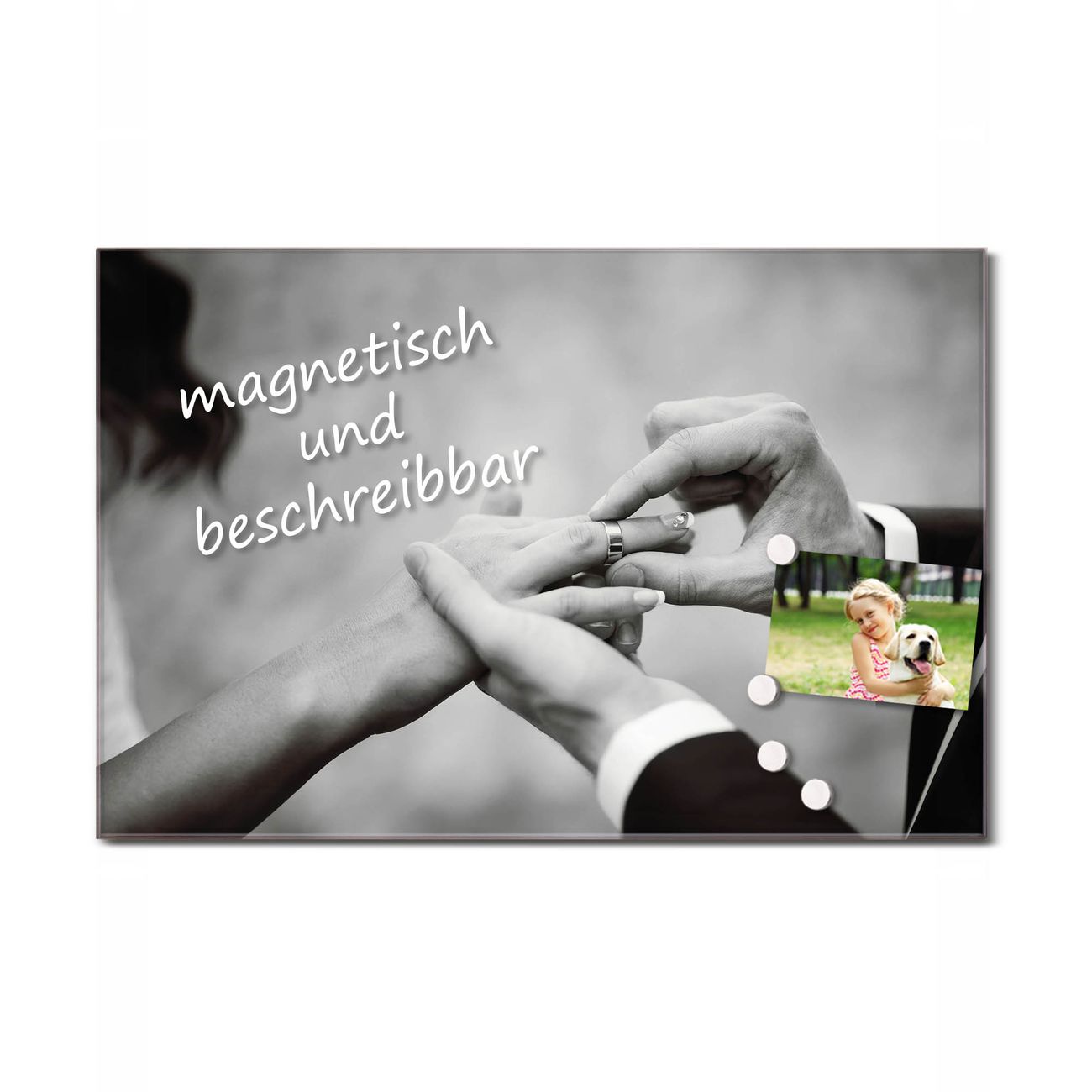 Glas Magnettafel im Querformat Verheiratet