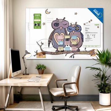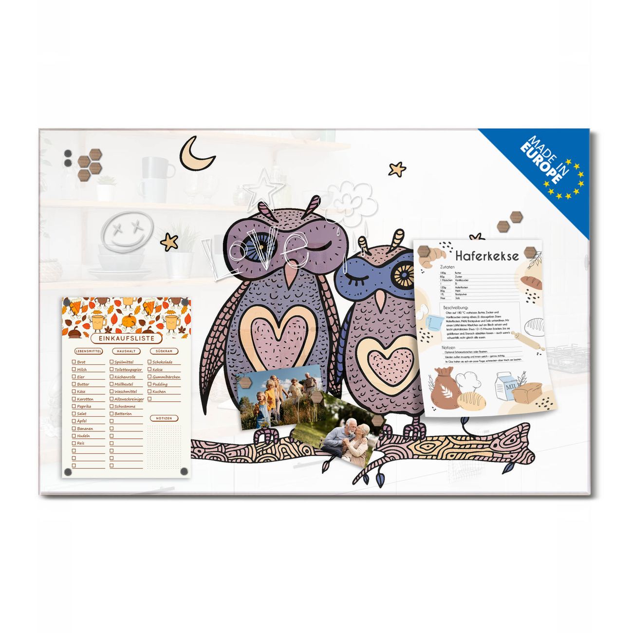 Glas Magnettafel im Querformat Motiv Verliebte Eulen