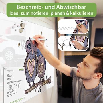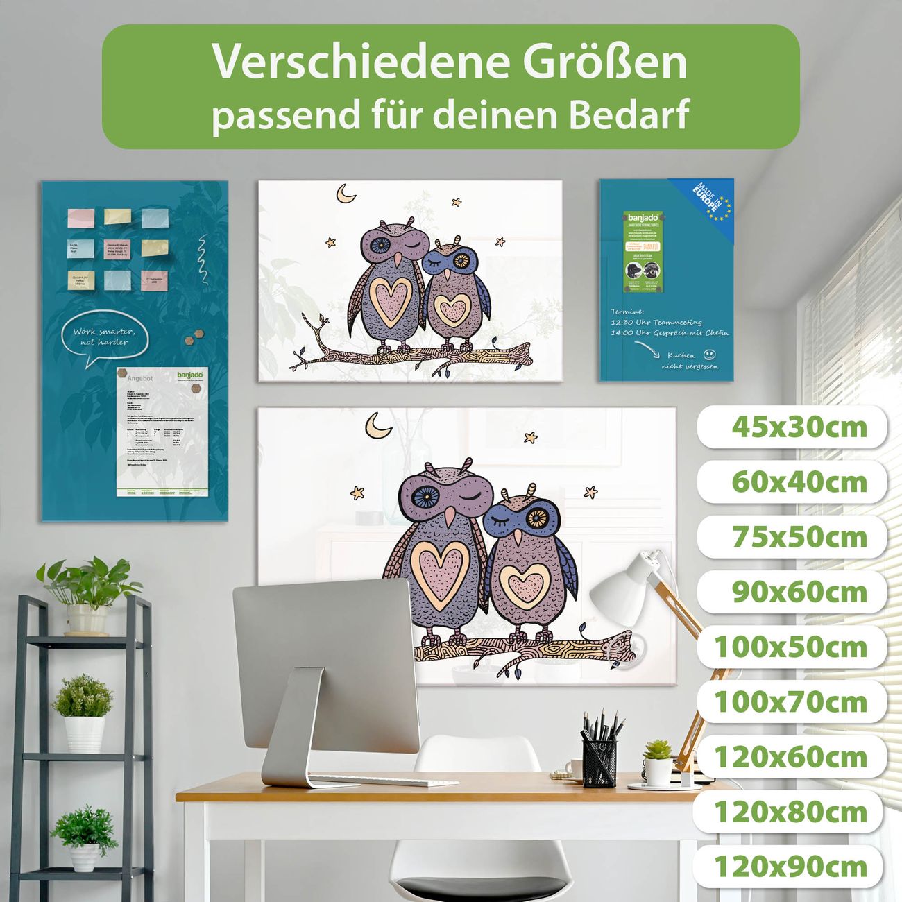 Die banjado Glas Magnettafel mit dem Motiv Motiv Verliebte Eulen verbindet Funktionalität mit Stil. Sie ersetzt das Zettelchaos durch klare Strukturen und bringt dabei eine warme, natürliche Atmosphäre in Ihr Zuhause. Ob im Büro, in der Küche oder im Eingangsbereich - dieses Design-Board zieht Blicke an und sorgt für Ordnung mit Charakter.